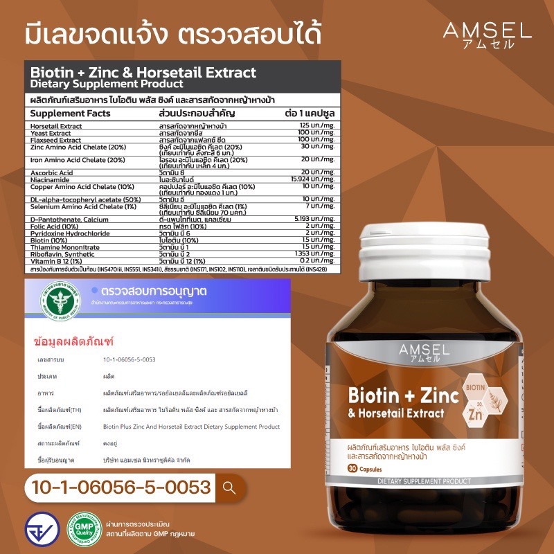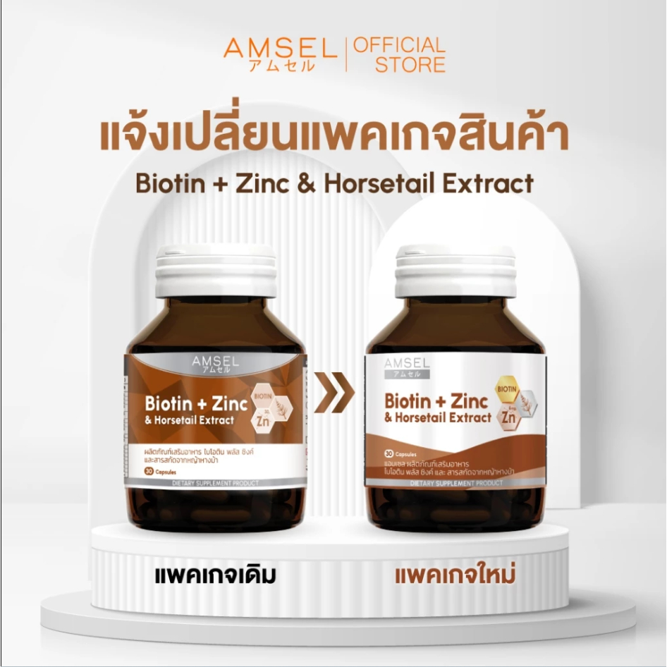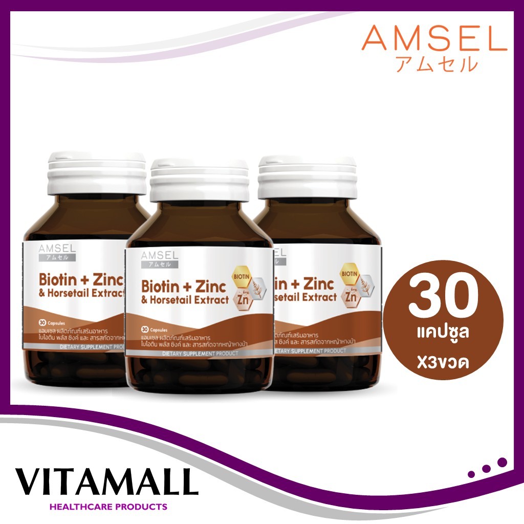3 ขวดคุ้มๆ Amsel Biotin Zinc & Horsetail Extract แอมเซล ไบโอติน ซิงค์ และสารสกัดจากหญ้าหางม้า (30 แคปซูล)