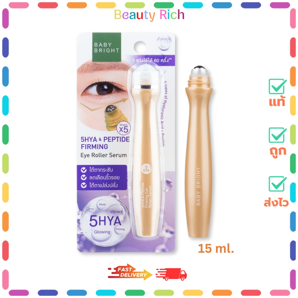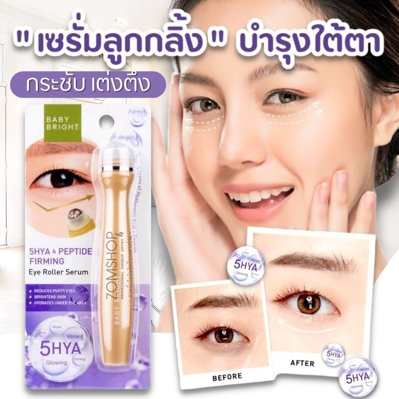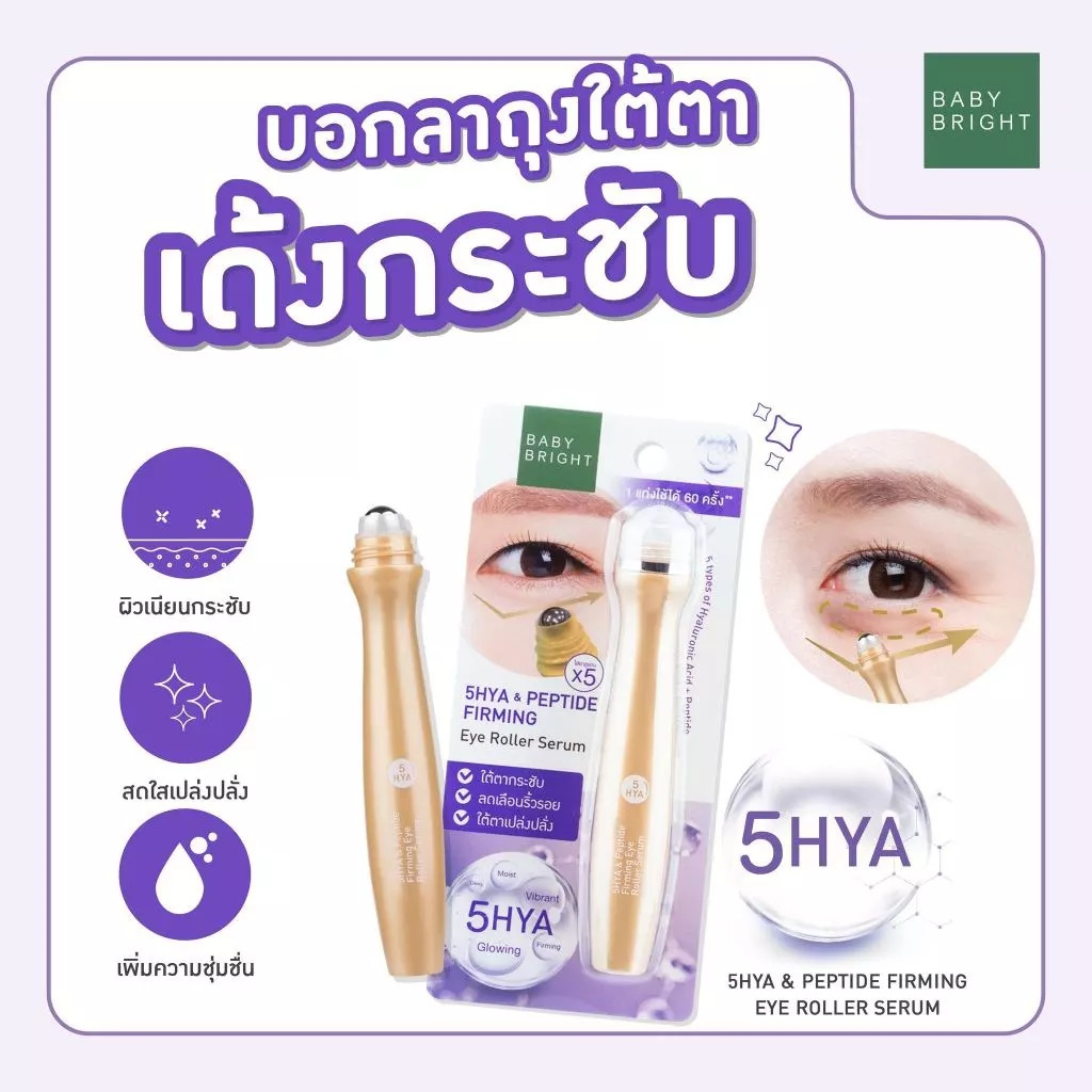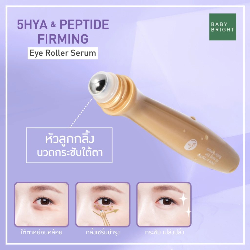 (1 แท่ง) Baby Bright (สีม่วง) อายโรลเลอร์เซรั่ม ลูกกลิ้งบำรุงรอบดวงตา สูตร 5ไฮยา+เปปไทด์ (15 ml.)