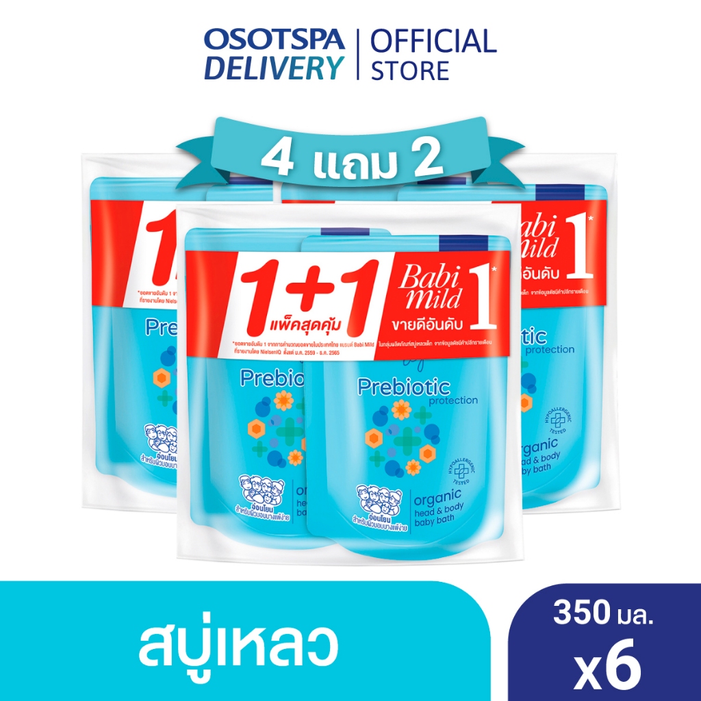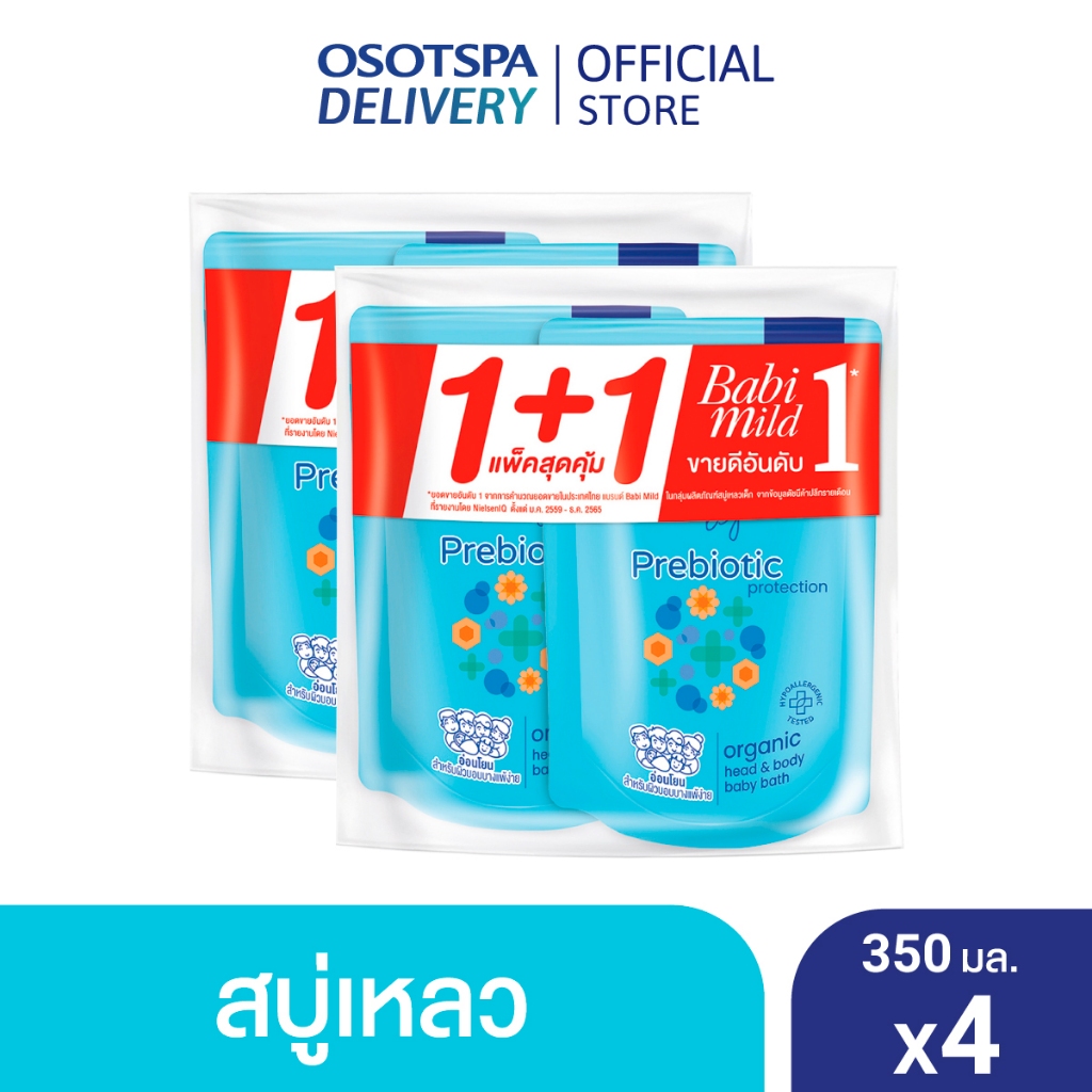 เบบี้มายด์สบู่เหลวอาบและสระ พรีไบโอติก ออร์แกนิก รีฟิล 350มล. แพ็คคู่ / Babi Mild Prebiotic Organic Bath Refil 350ml