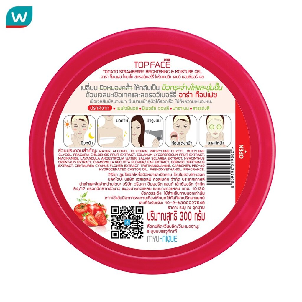 Arra อาร่า ท็อปเฟซ โทเมโท สตรอว์เบอร์รี่ ไบร้ทเทนนิ่ง แอนด์ มอยซ์เจอร์ เจล 300 กรัม