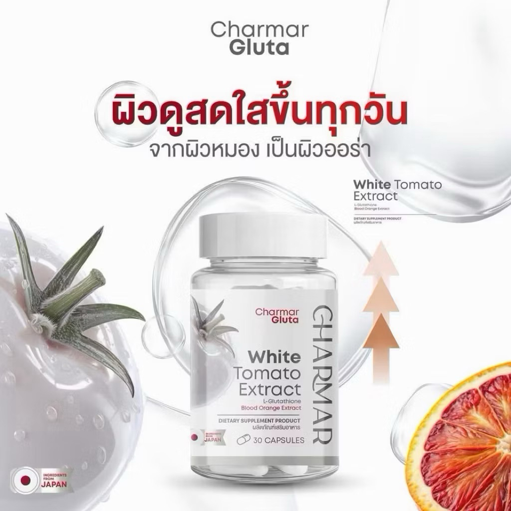 ชาร์มาร์กลูต้ามะเขือเทศสีขาว Charmar White Tomato Extract 1 กระปุก 30 แคปซูล