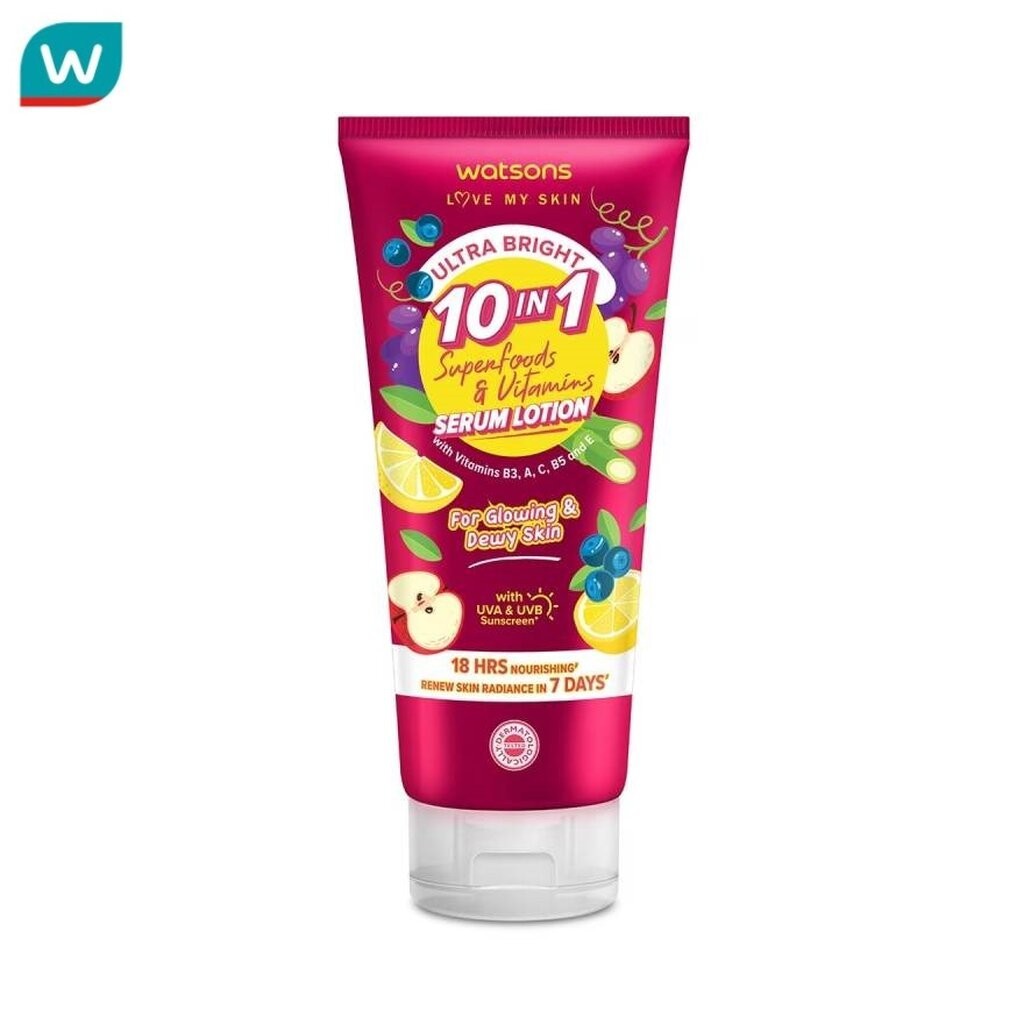 Watsons วัตสัน อัลตร้า ไบร์ท 10-อิน-1 ซุปเปอร์ฟู้ดส์ วิตามิน เซรั่ม โลชั่น 330มล.