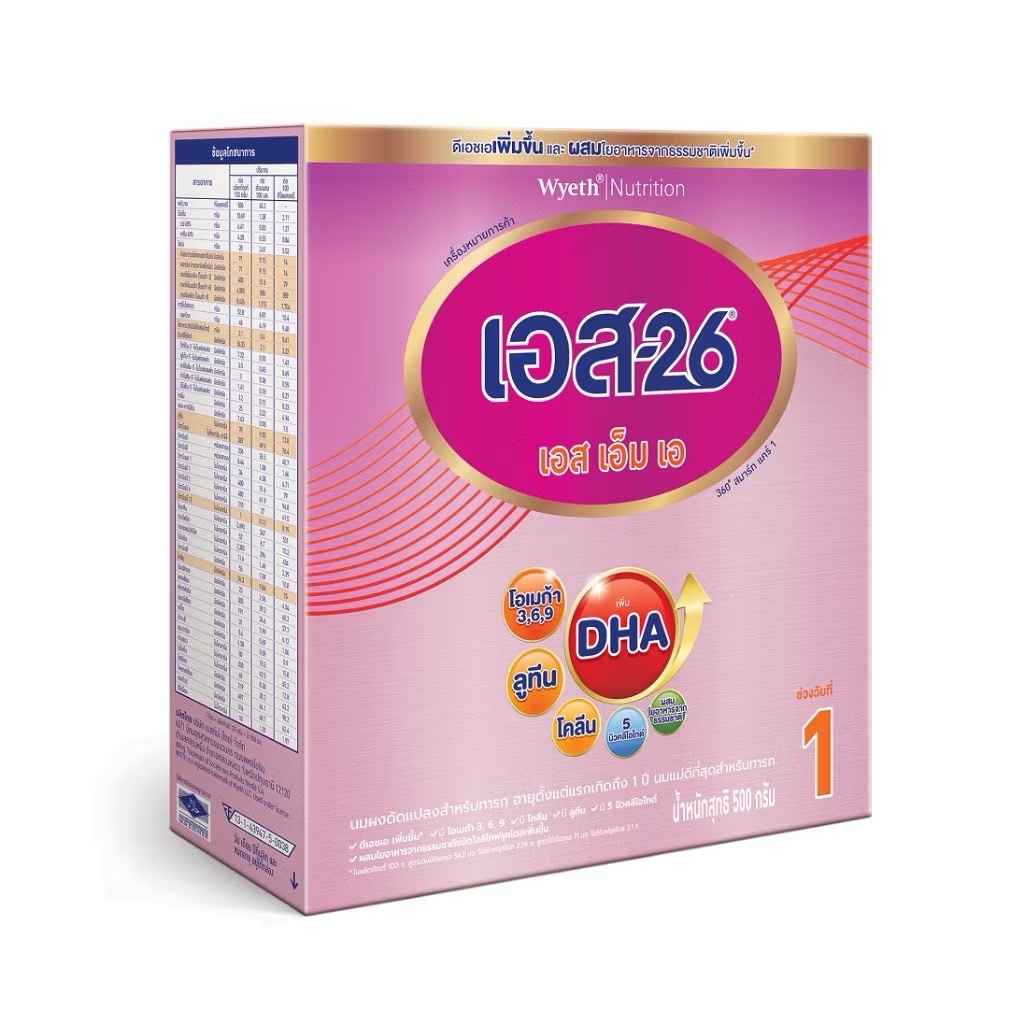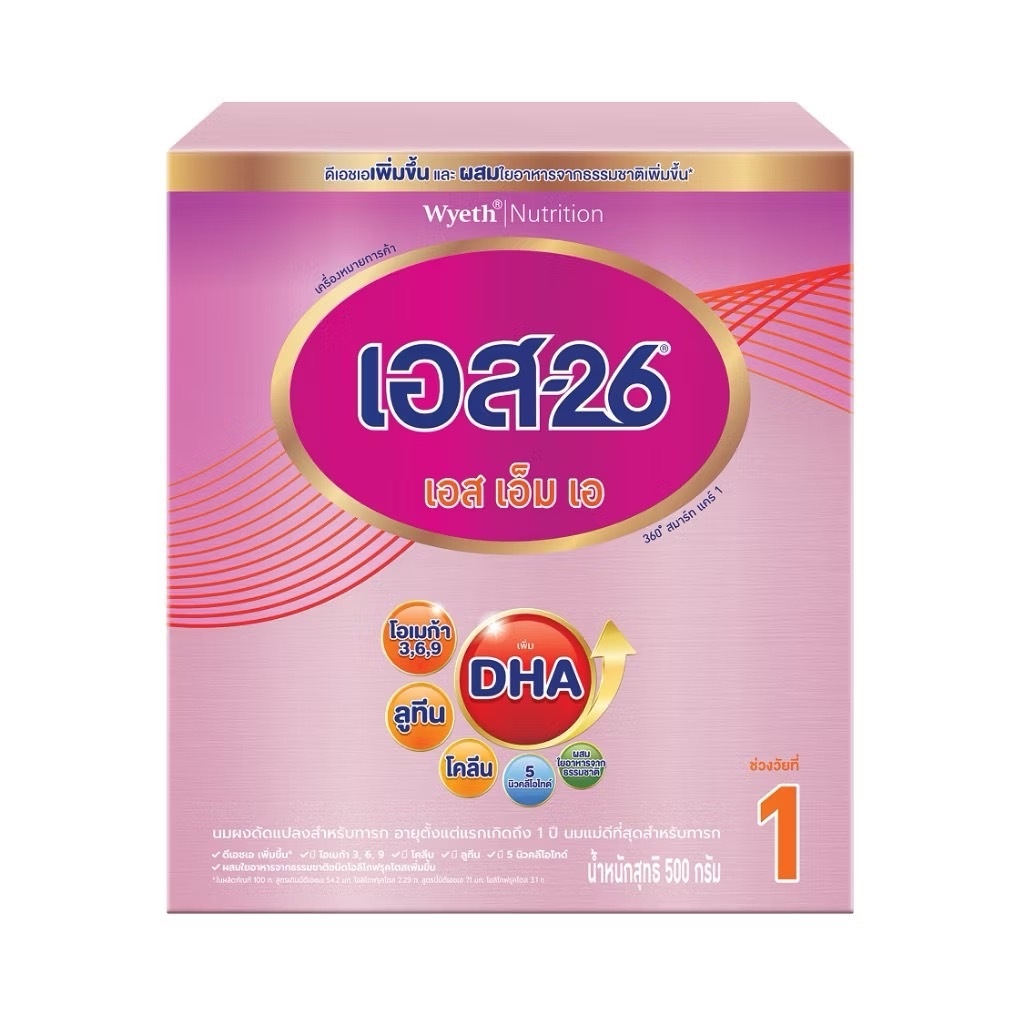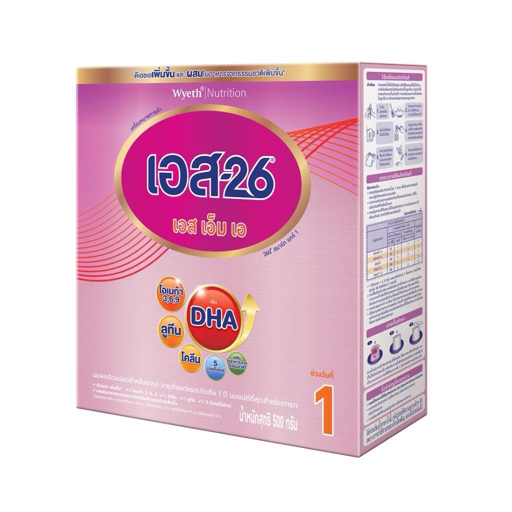 S-26 เอสเอ็มเอ สูตร 1 กล่องม่วง นมผงดัดแปลงสำหรับทารก ขนาด 500 กรัม 1กล่อง