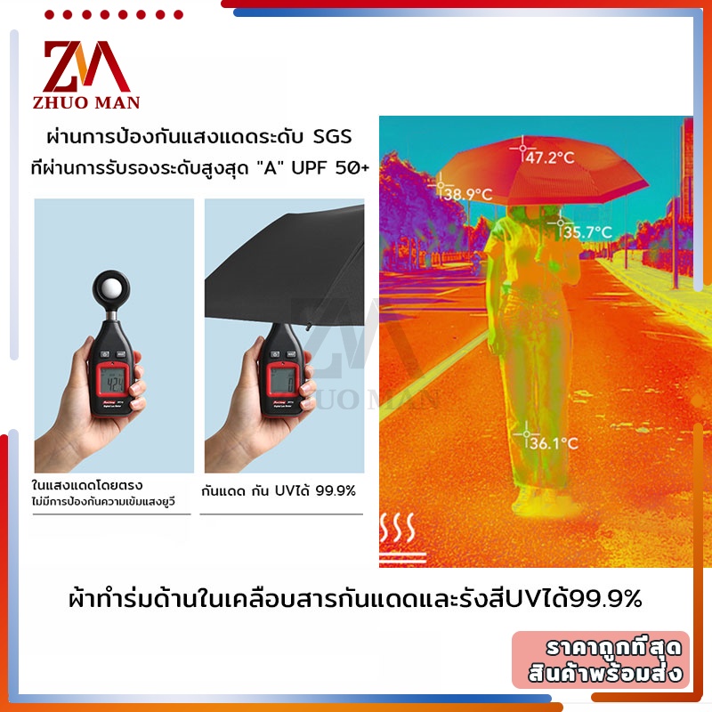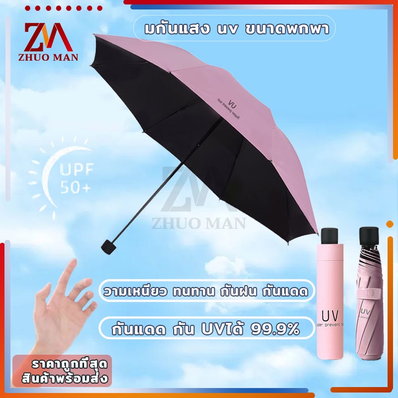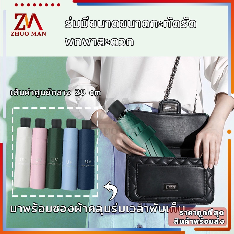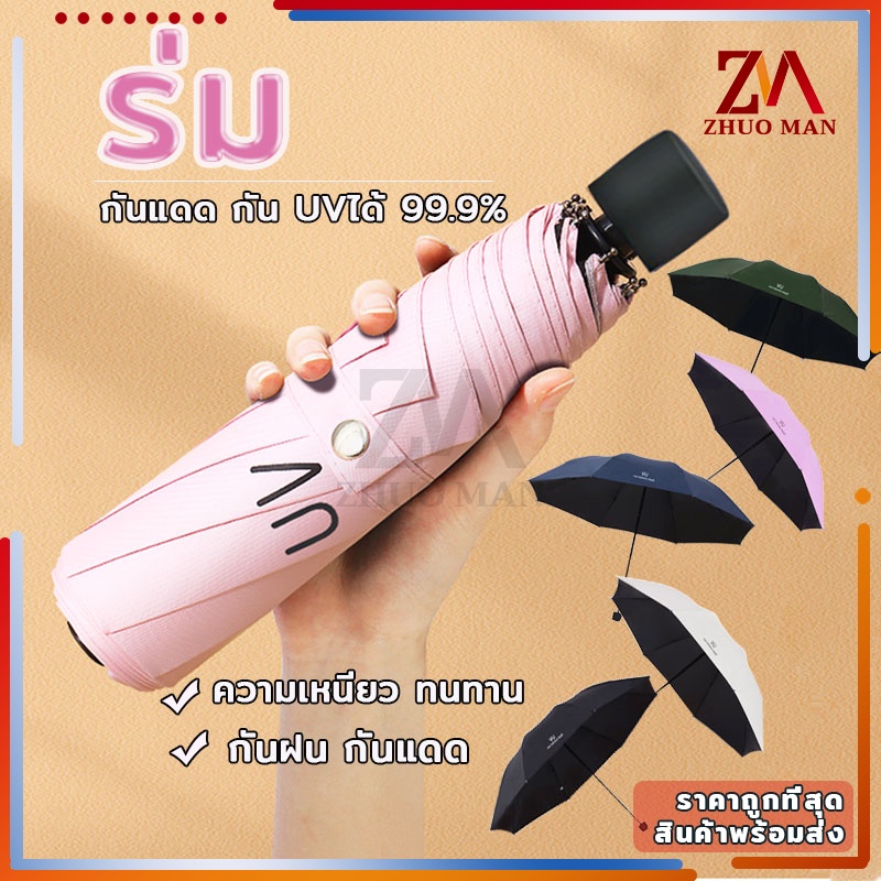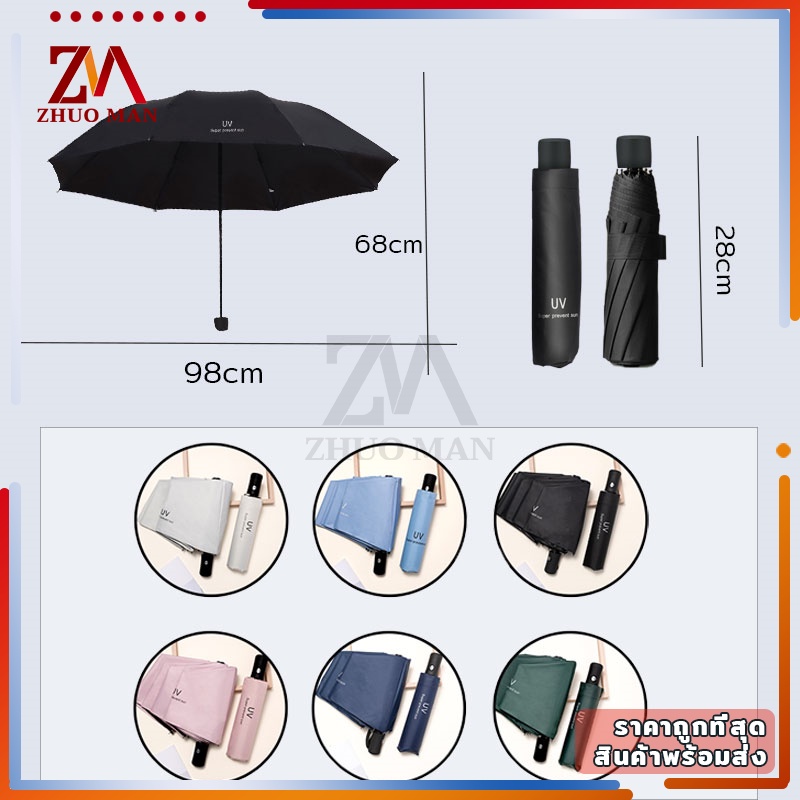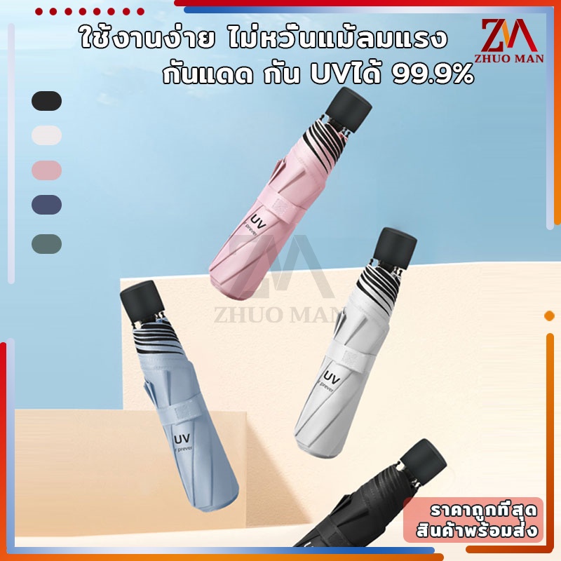 ร่มกันแดด ร่มพับได้กันแสง UV กันฝน วัสดุแข็งแรง ต้านลมได้ดี พกพาง่าย สไตล์เรียบง่าย