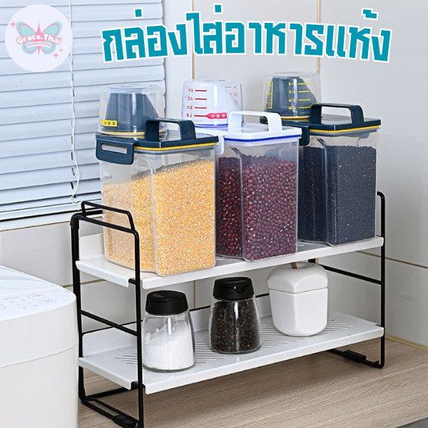 🍒Grace Thai🍒 กล่องใส่อาหารมีฝาปิด พร้อมถ้วยตวง พลาสติกอย่างดี กล่องใส่อาหารแห้ง ของใช้ในครัวเรือน