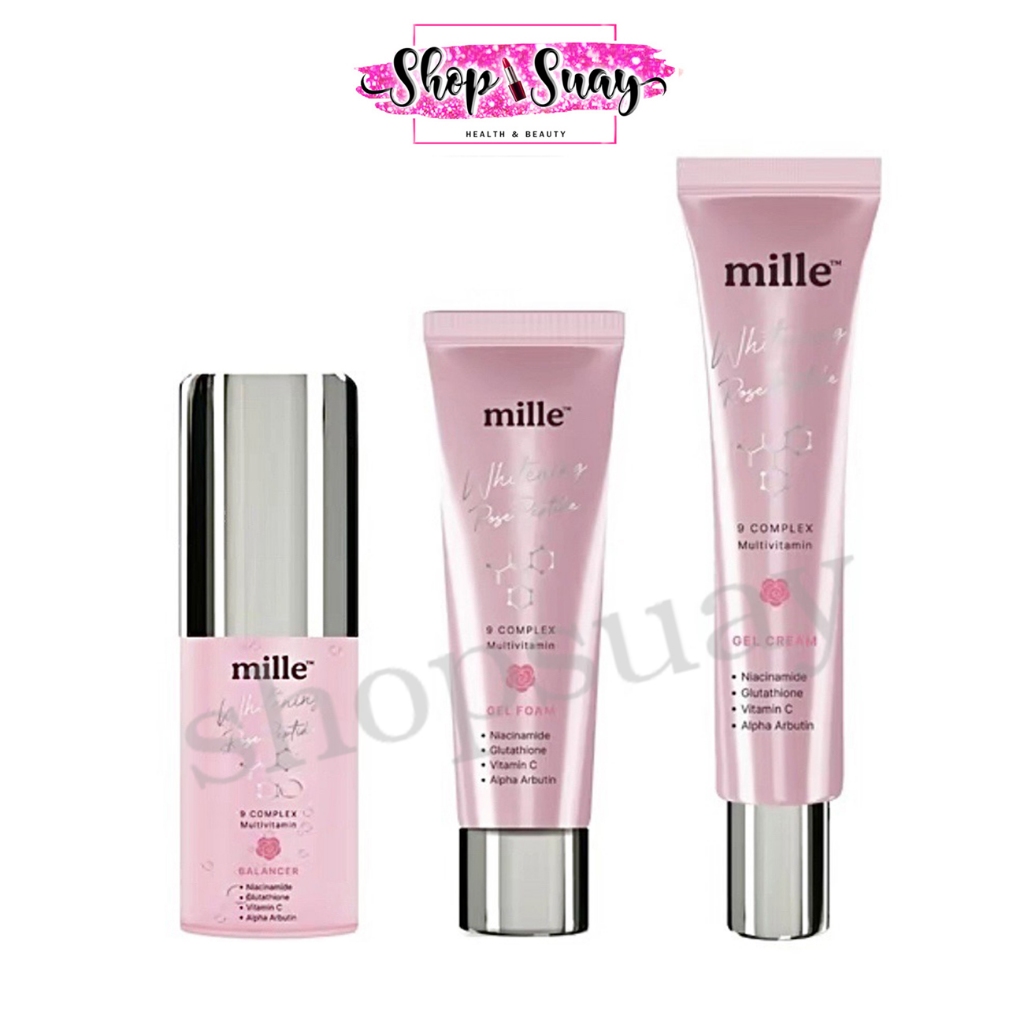 ** 1 หลอด ** มิลเล่ มอยส์เจล สูตรใหม่ MILLE WHITENING ROSE PEPTIDE SET (BALANCER 35 ml./ GEL FOAM 30g./GEL CREAM 25g.)
