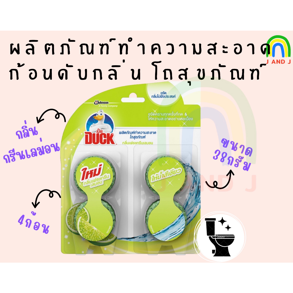 พร้อมส่ง เป็ด ก้อนดับกลิ่น โถสุขภัณฑ์ กรีนเลม่อน 38 กรัม บรรจุสี่ก้อน Duck in Tank Toilet Cleaner Green Lemon (bundle of