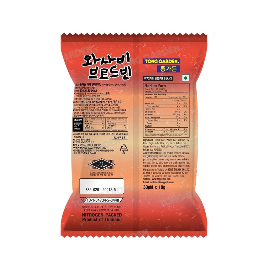 ทองการ์เด้น ปากอ้าวาซาบิ 300 กรัม (10 กรัม * 30 ซอง)/Tong Garden Broad Bean Wasabi 300 G. (10 G. * 30 Pack)