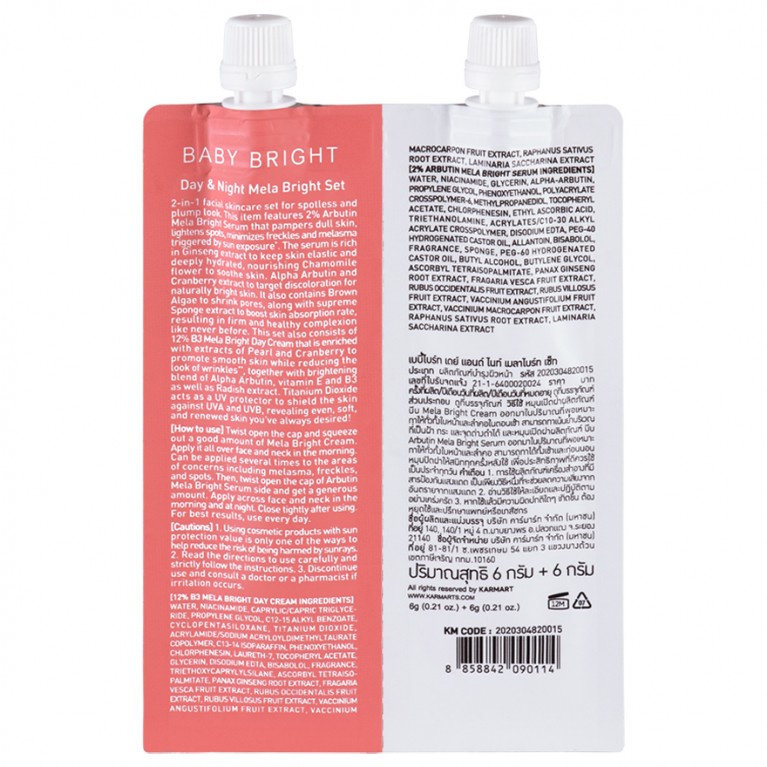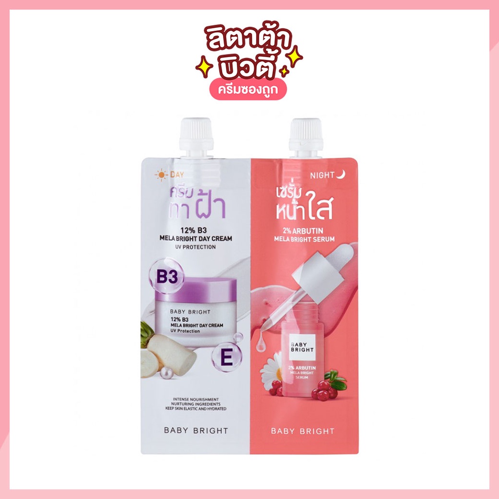 [1ซอง] Baby Bright Day & Night Mela bright set เบบี้ไบร์ท เดย์ ไนท์ เมลาไบร์ท เซ็ท 6 กรัม + 6 กรัม