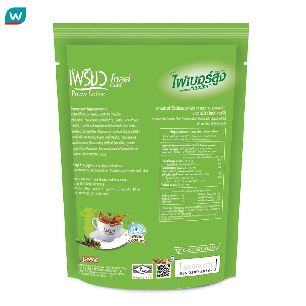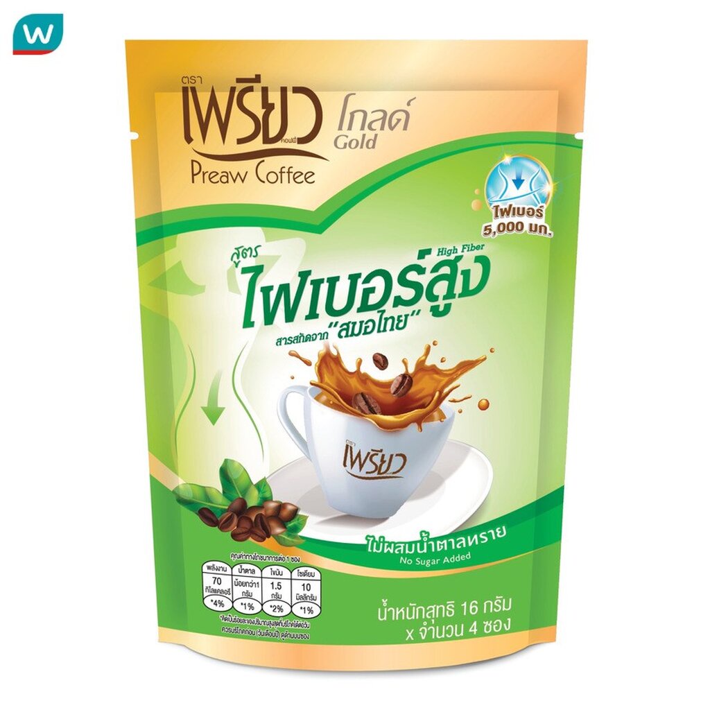 Preaw เพรียว อินสแตนท์ คอฟฟี่ โกลด์ ไฟเบอร์ 4ซอง (ไม่ผสมน้ำตาล)