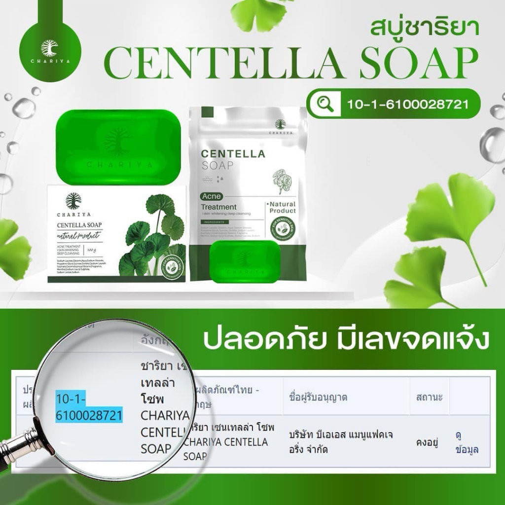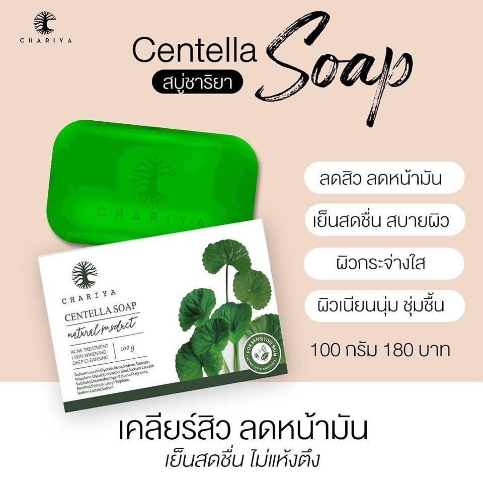 ชาริยา สบู่ใบบัวบกชาริยาของแท้100% ขนาด 100กรัม ก้อนใหญ่ ลดสิว กระชับรูขุมขน ผิวสุขภาพดี