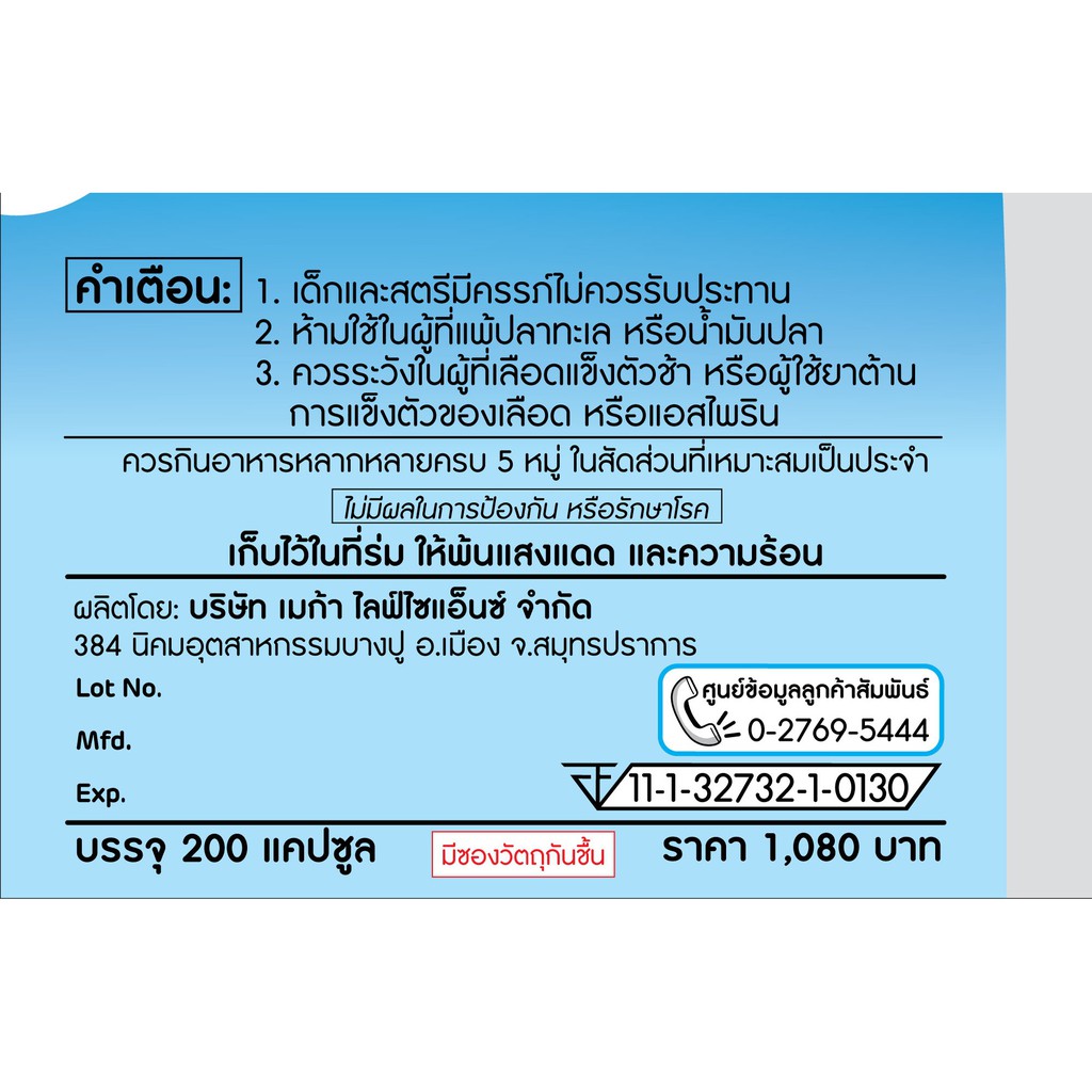 MEGA Fish Oil 1000 mg. Set 200 เม็ด - น้ำมันปลาสูตรเข้มข้น 1,000 mg. ใน 1 แคปซูล