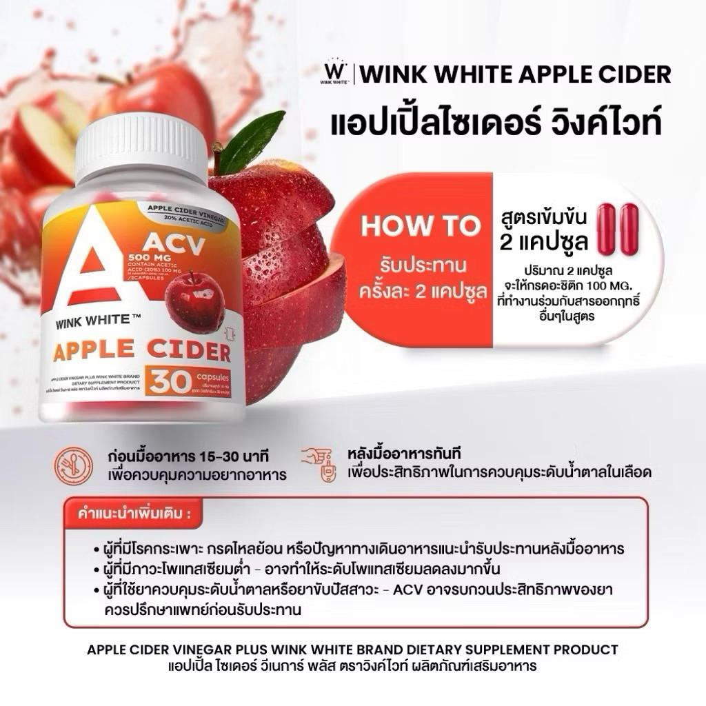[กระปุก] แอปเปิ้ลไซเดอร์วิงค์ไวท์ WINK WHITE APPLE CIDER VINEGAR PLUS ( 1 กระปุก 30 แคปซูล)