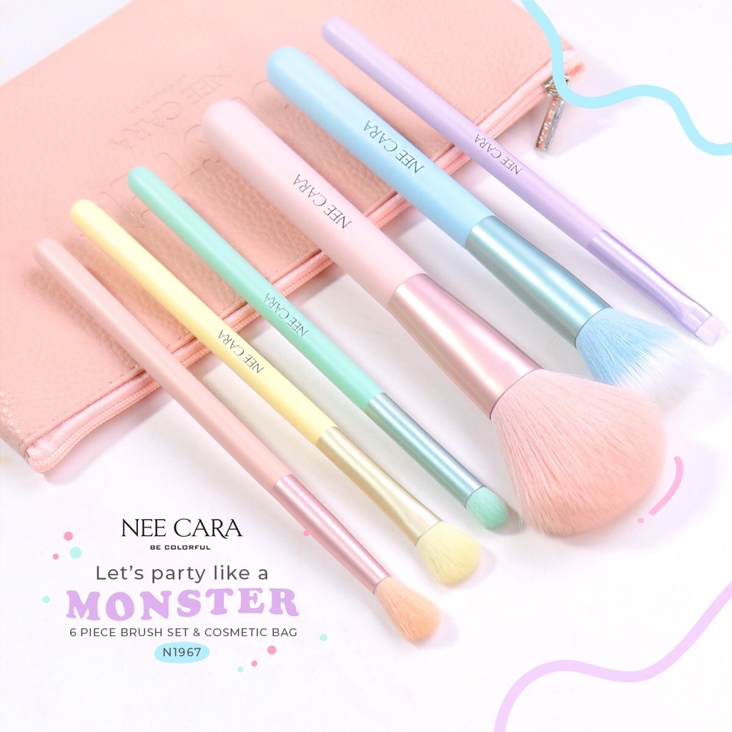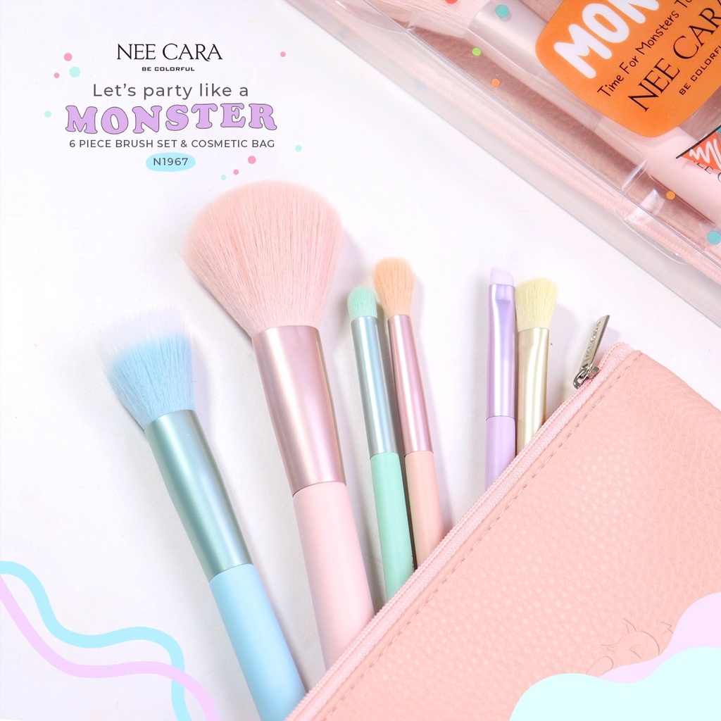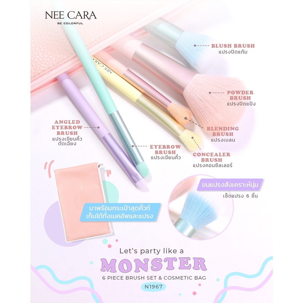 ♦️ของแท้·ส่งด่วน·ถูก♦️Nee Cara Monster 6 Brush+Bag #N1967 : neecara นีคาร่า ชุดแปรง แต่งหน้า+กระเป๋า x 1 ชิ้น dayse