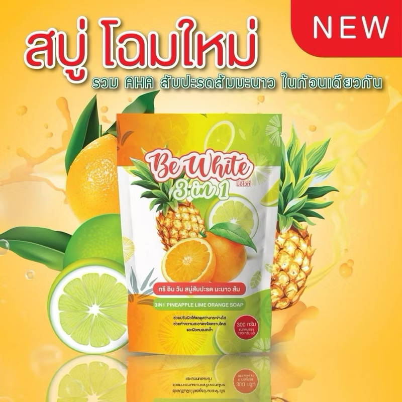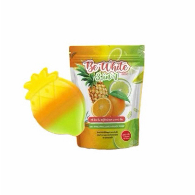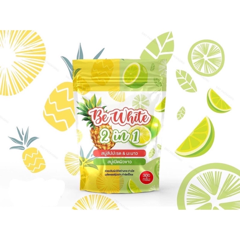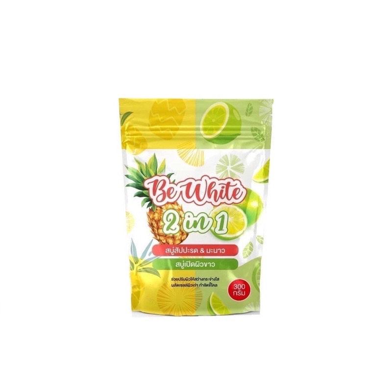 แพคเก็จใหม่ สบู่สับปะรด&มะนาว BE White 2 in 1 สบู่เปิดผิวขาว (1ห่อมี 5 ก้อน)