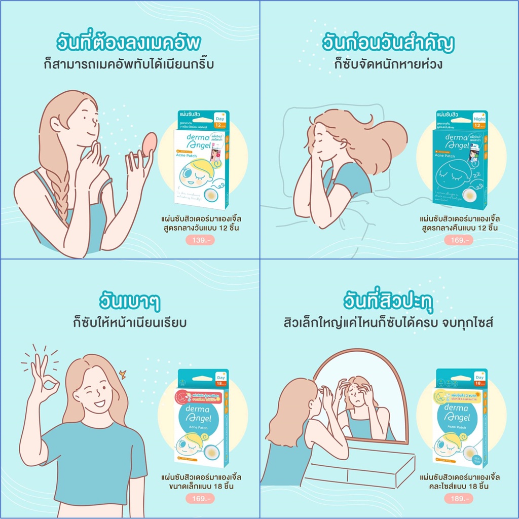 แผ่นซับสิว Derma Angel Acne Patch แผ่นแปะสิว เดอร์มาแองเจิ้ล เดอร์มาแองเจิล dermaAngel แผ่นซับสิว แปะสิว