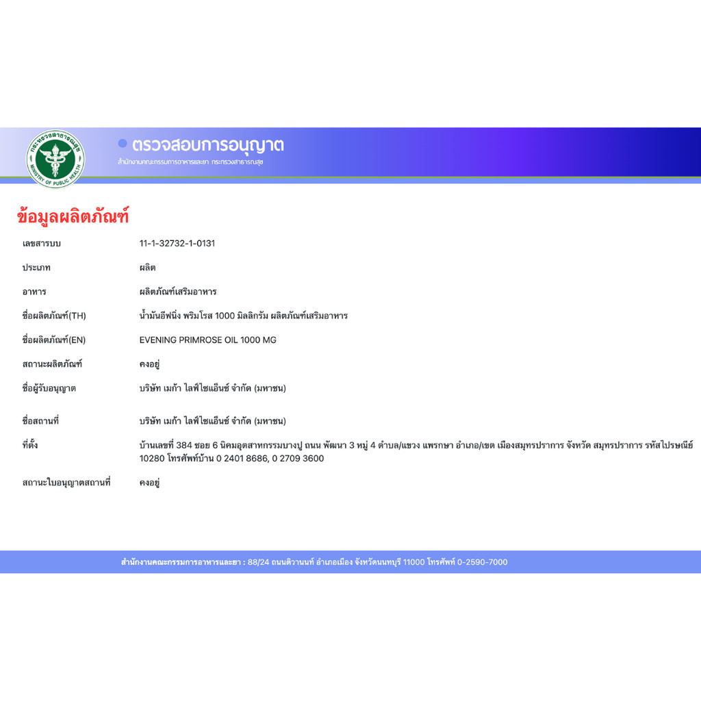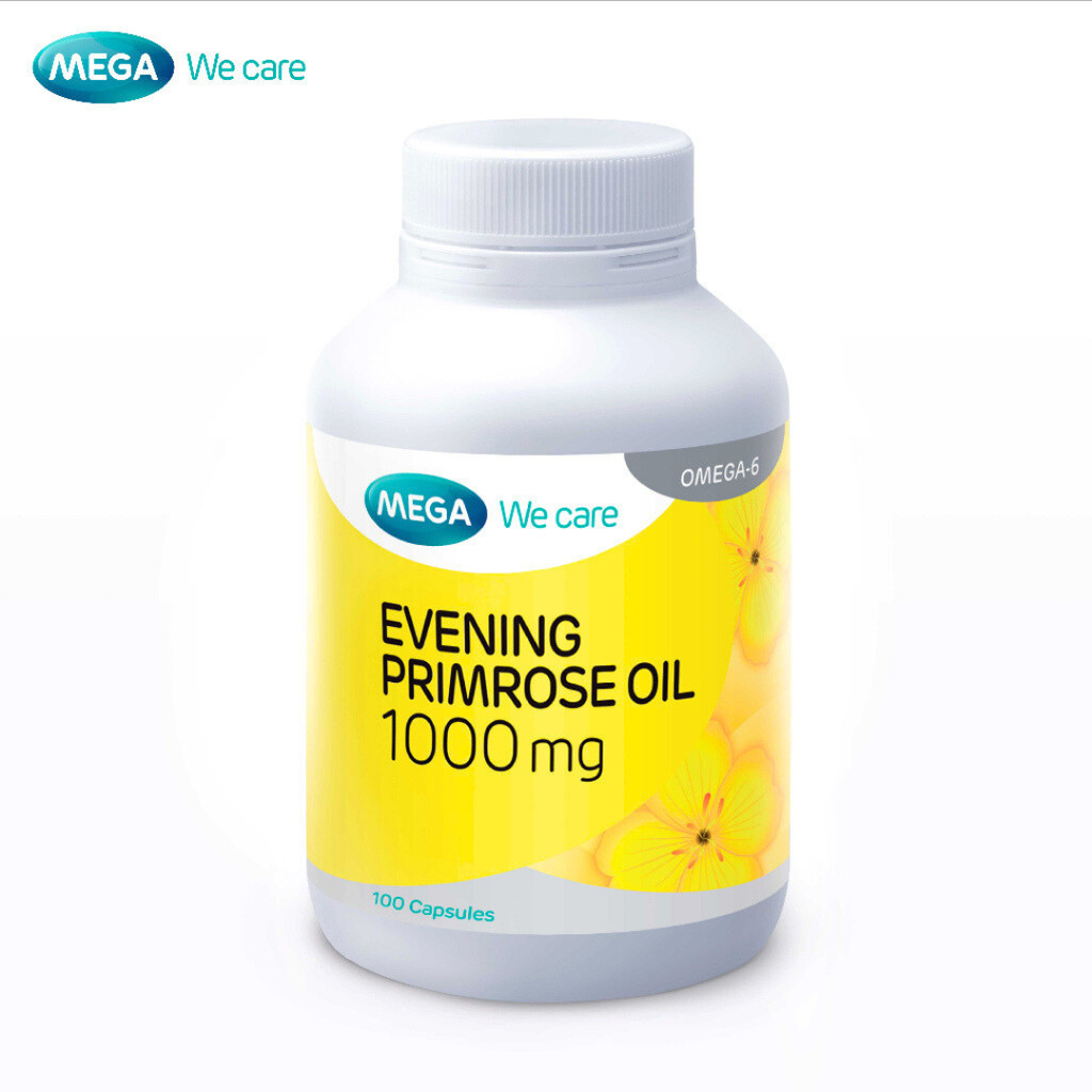 MEGA We care เมก้าวีแคร์ Evening primrose oil 1000 mg น้ำมันอีฟนิ่งพริมโรส 1000 มก. 100 แคปซูล [PC]