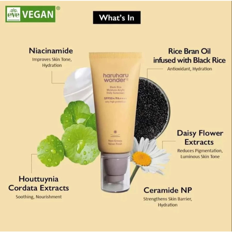 HARUHARU WONDER Black Rice Moisture Airyfit Daily Sunscreen SPF50+/PA++++ กันแดดเนื้อบางเบา ซึมไว ไม่มัน ผิวชุ่มชื้น