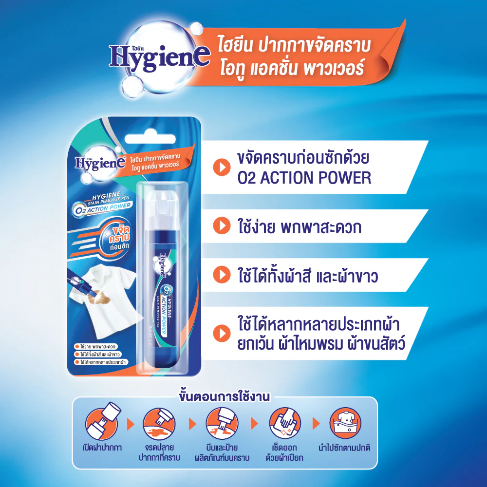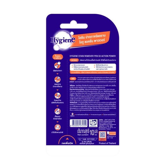 ไฮยีน ปากกาขจัดคราบ 10 มล./Hygiene Stain Remover Pen O2 Action Power 10ml