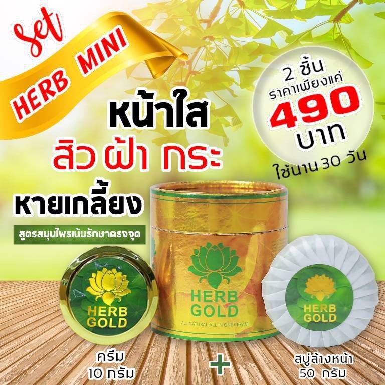 HERB GOLD MINI ครีมเฮริบโกลด์ มินิ [ ครีม 10g. + สบู่ ]