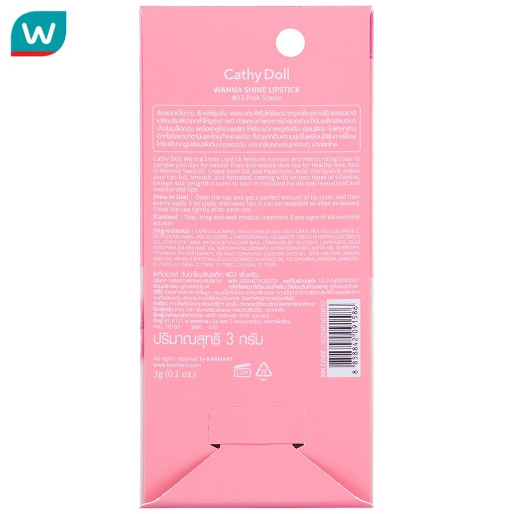 Cathy Doll เคที่ ดอลล์ วันนา ไชน์ ลิปสติก 3ก. #03 พิ้งค์ ซีน