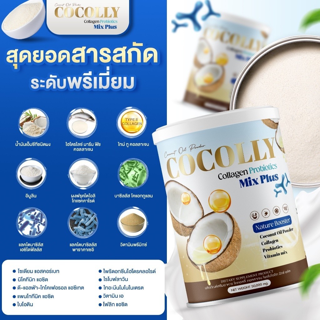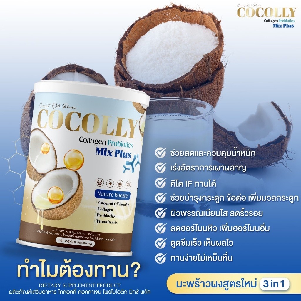 [ในไลฟ์ลด50%] COCOLLY COLLAGEN โคคอลลี่คอลาเจน ช่วยลดความอยากอาหาร บำรุงกระดูก ผิวสวย ขนาด1กระปุก