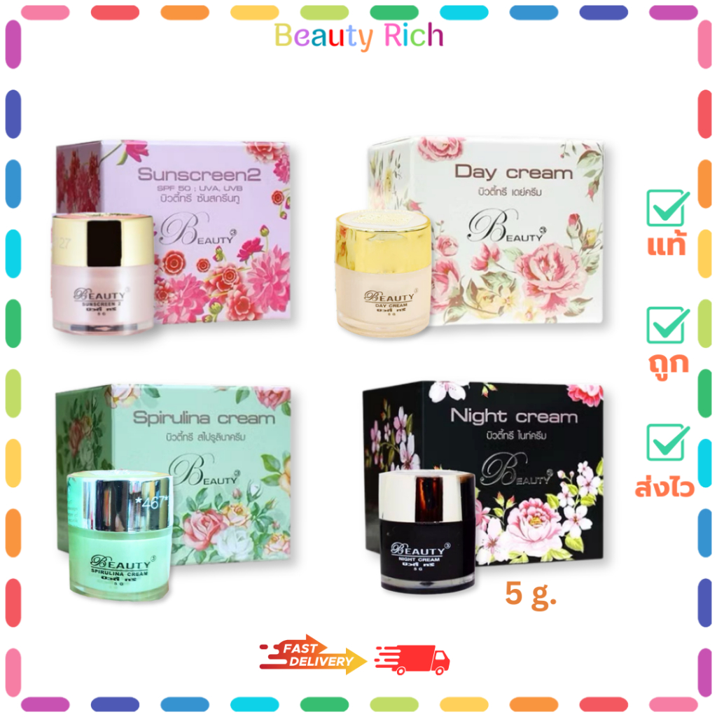 (1 กระปุก) Beauty 3 บิวตี้ทรีครีมบำรุงหน้า มีให้เลือก 4 สูตร (5 g.)