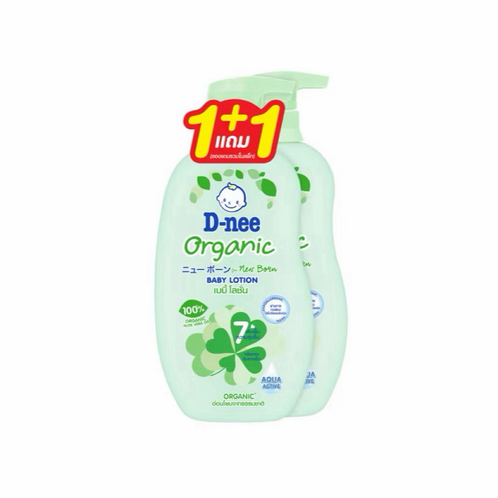 [แพ็คคู่ / ขวดเดียว] D-nee ดีนี่ ออร์แกนิค เบบี้โลชั่น ขนาด 300 มล. สีเขียว หัวปั๊ม
