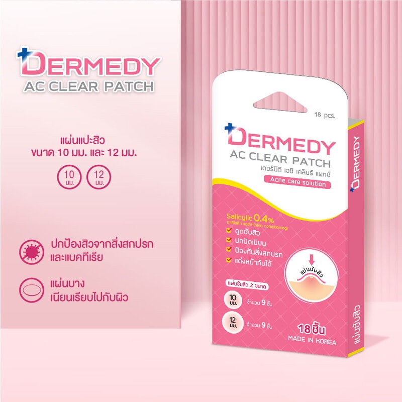 DERMEDY Ac Clear Patch 18 Dots เดอร์มีดี แผ่นแปะสิวไฮโดรคอลลอยด์.
