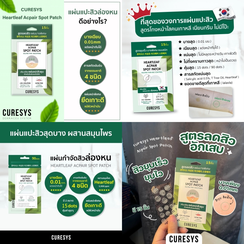 Curesys เคียวร์ซิส แผ่นแปะสิวล่องหน [เข ียว/เหลือง/ฟ้า] [1 ซอง] [เลือกสูตร]