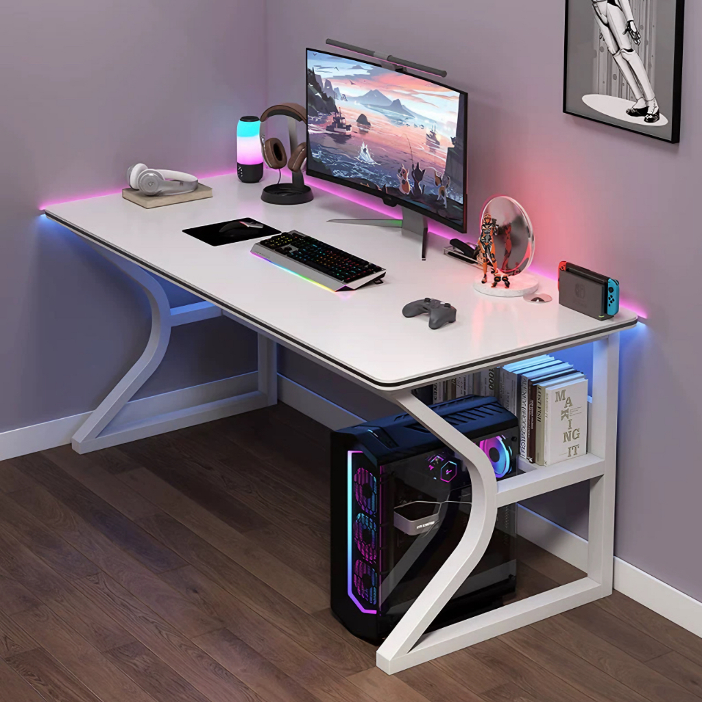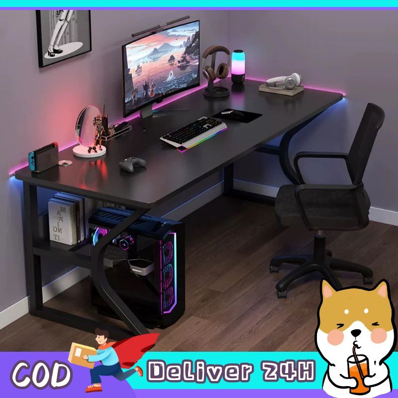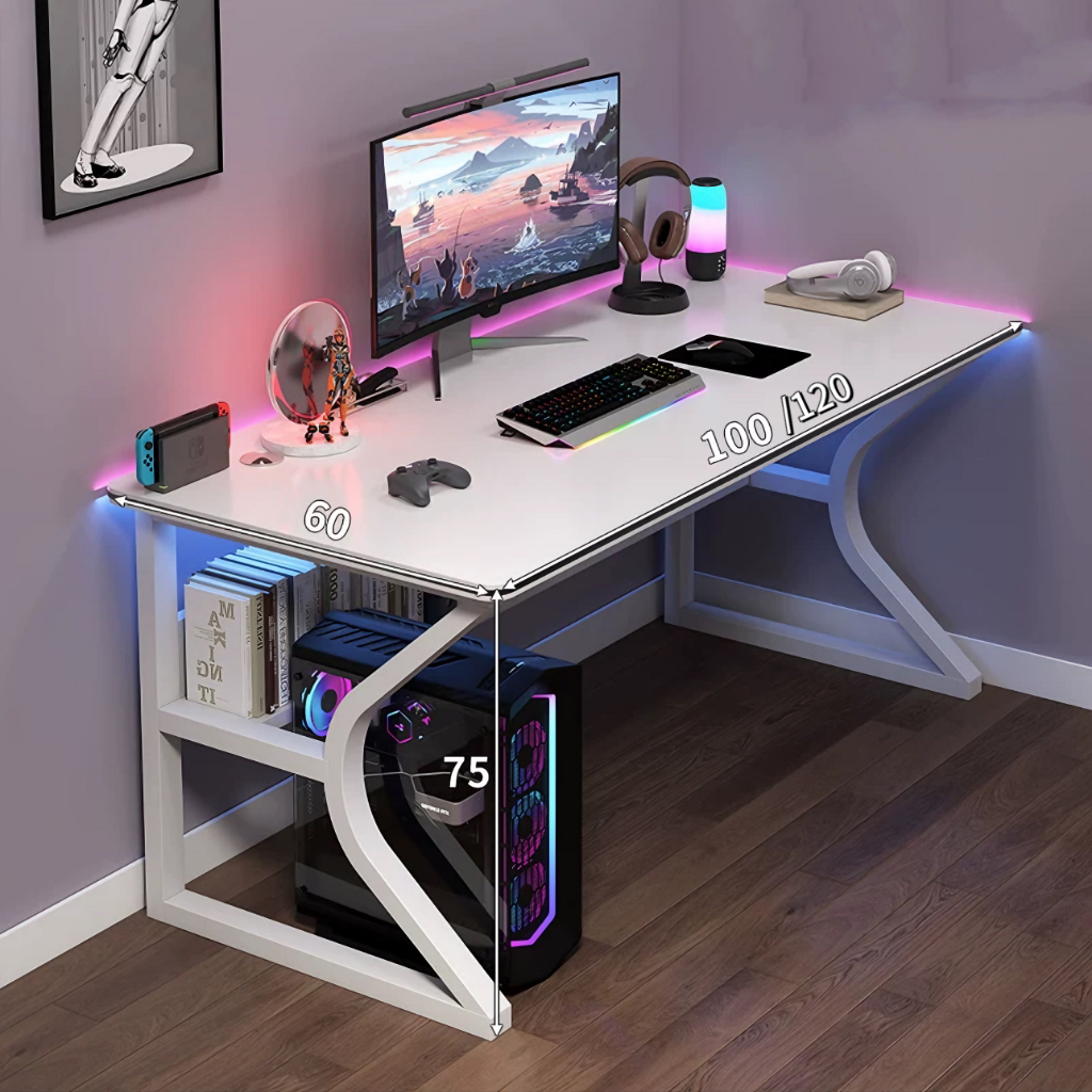 Dogegg🐶โต๊ะทำงาน วัสดุไม้อัดMDF แบบ2ขนาด100/120cm พร้อมชั้นวางใต้โต๊ะ โครงสร้างมั่นคง