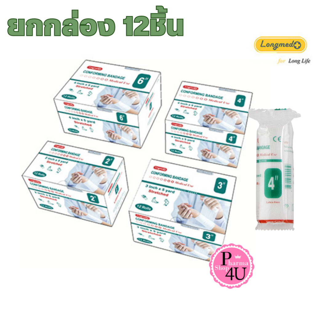 [ยกกล่อง] ผ้าก๊อซยืดพันแผล ผ้าก๊อซพันแผล Longmed Conforming Bandage 1 กล่อง 12 ม้วน เลือกขนาด 2 3 4 6 นิ้ว