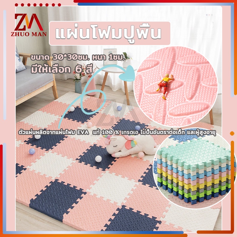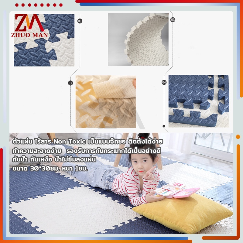 แผ่นรองคลานสำหรับเด็ก โฟมจิ๊กซอว์ปูพื้น กันกระแทก ขนาด30*30ชม. หนา12ชม กันน้ำและเหงื่อ ทำความสะอาดง่ายแห้งเร็ว