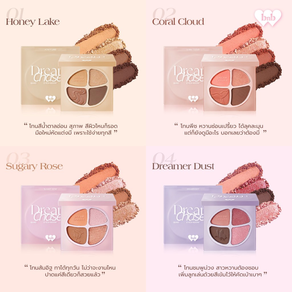 ถูก/แท้/มีไลฟ์ พาเลทท์ Barenbliss Dream Chaser Quad Eyeshadow Palette อายแชโดว์ เนื้อแมท ชิมเมอร์ กลิตเตอร์ ตาวิ้ง ละมุน