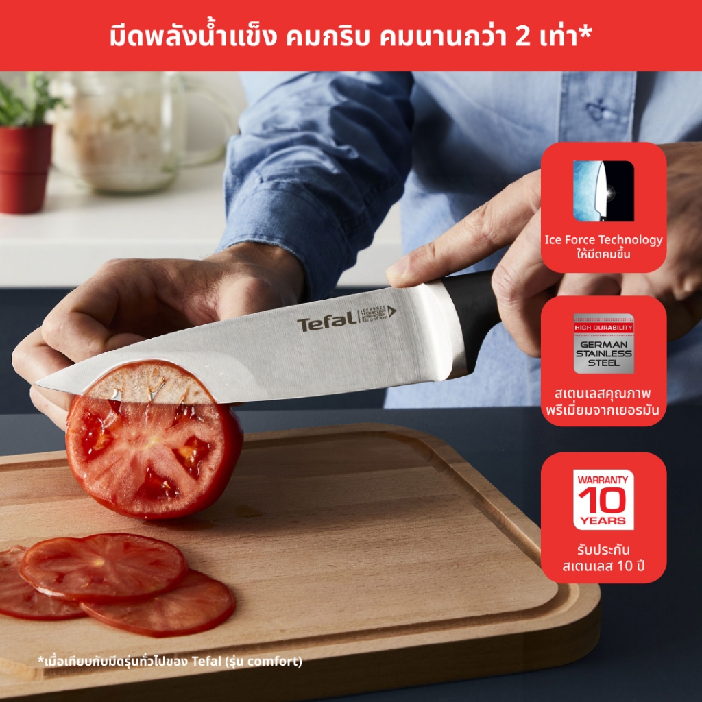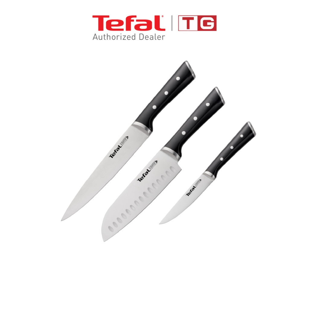 TEFAL ชุดเซ็ตมีด Ice Force 3 ชิ้น มีดเชฟ 20 ซม. + มีดซันโตกุ 18 ซม. + มีดอเนกประสงค์ 11 ซม. รุ่น K232S374