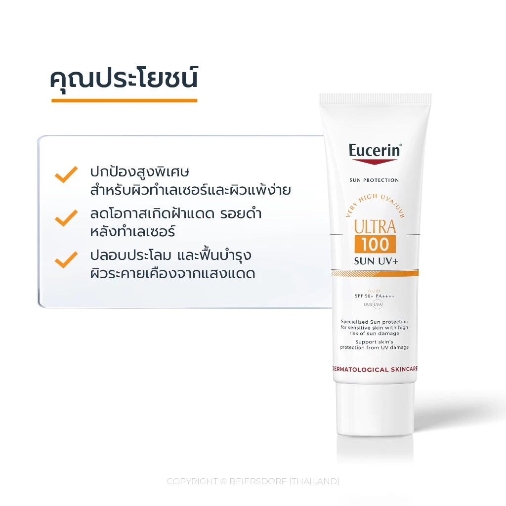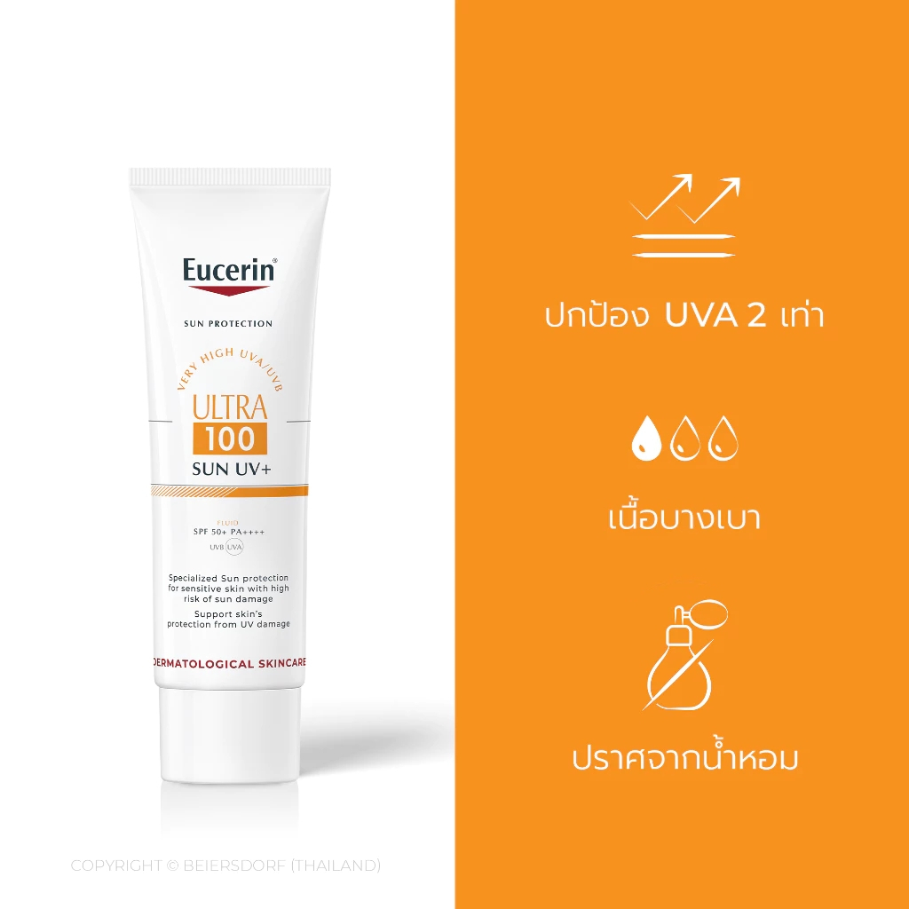 Eucerin กันแดด / Eucerin Ultra 100 Sun UV+ Fluid SPF50+ PA++++ 80 ml.