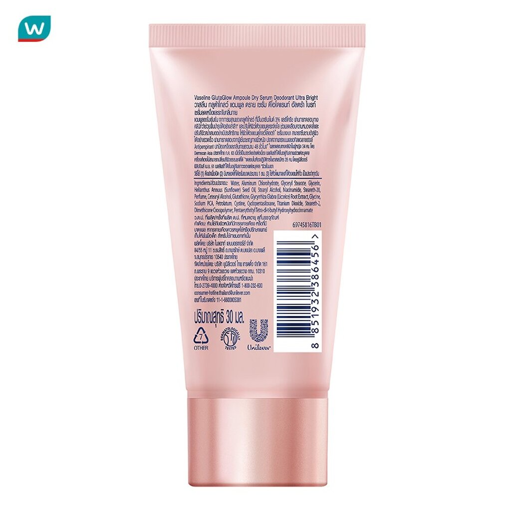 Vaseline วาสลีน ดราย เซรั่ม กลูต้าโกลว์ แอมพูล ดีโอโดแรนท์ อัลตร้า ไบรท์ 30 มล.