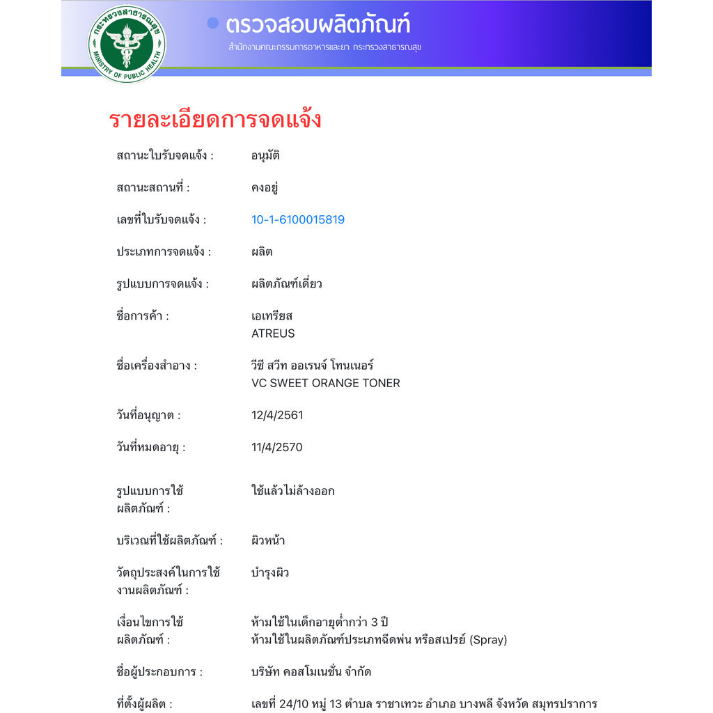 Atreus VC Sweet Orange Toner 500 ml เอเทรียส โทนเนอร์ วิตซี น้ำตบ