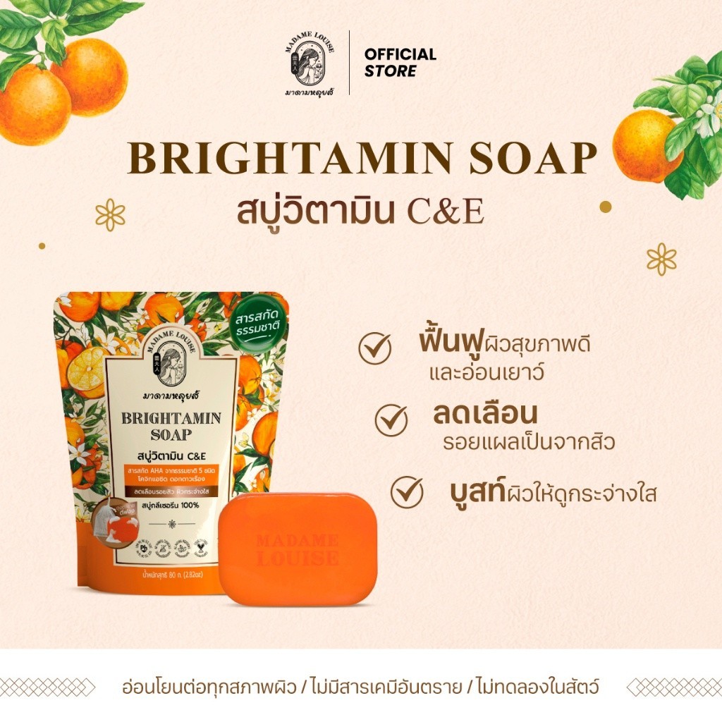 [แพ็ค 4 ซองสบู่ ส้ม มาดามหลุยส์ ] BRIGHTAMIN SOAP สบู่แห่งความอ่อนเยาว์ ขนาด 80 กรัม x 4