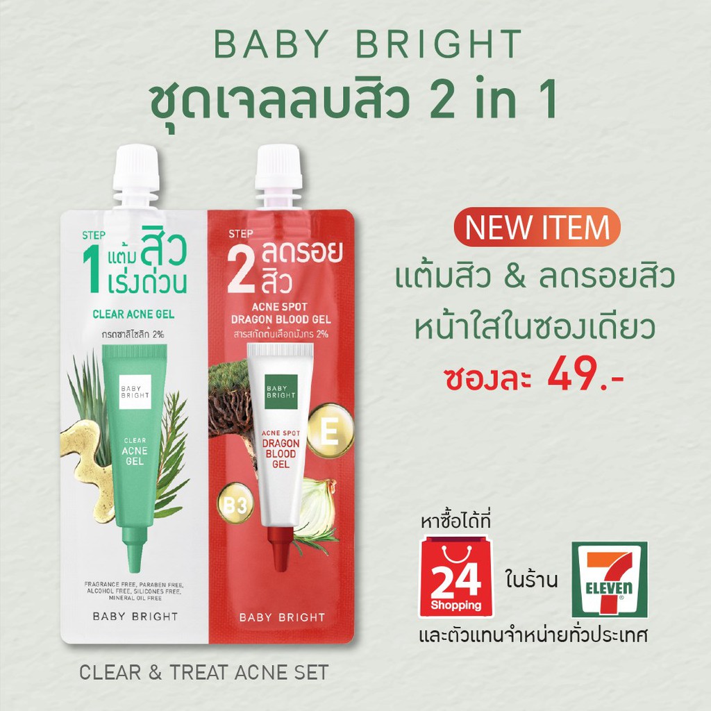 🔥กล่องx6ซอง🔥Baby Bright Clear & Treat Acne Set เบบี้ ไบร์ท เคลียร์ แอนด์ ทรีทแอคเน่เซ็ท