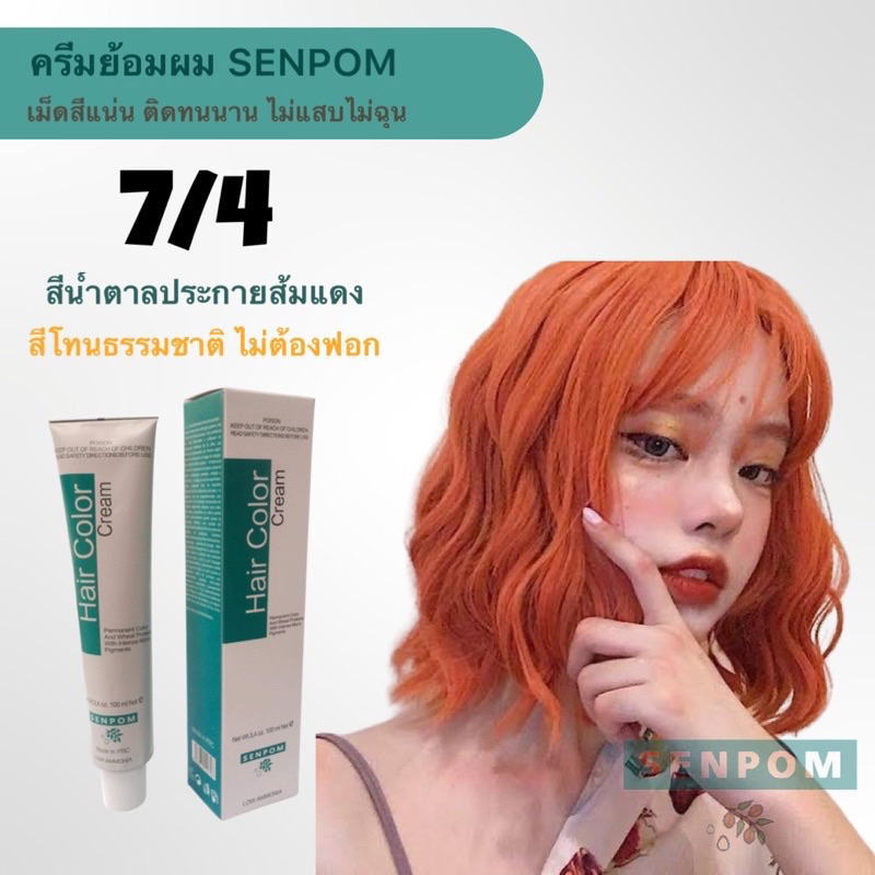 ครีมย้อมผม 7/4 สีน้ำตาลอ่อนประกายส้ม สีติดแน่น ไม่ต้องฟอก สำหรับผมธรรมชาติไม่เคยฟอกเคยย้อมมาก่อน