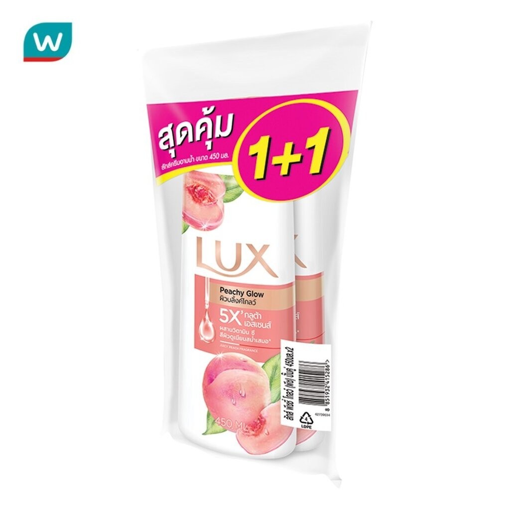 Lux ลักส์ ครีมอาบน้ำ พีชชี่ โกลว์ 450 มล. แพ็คคู่