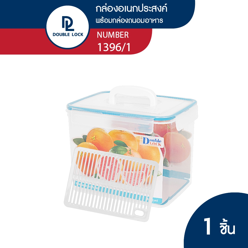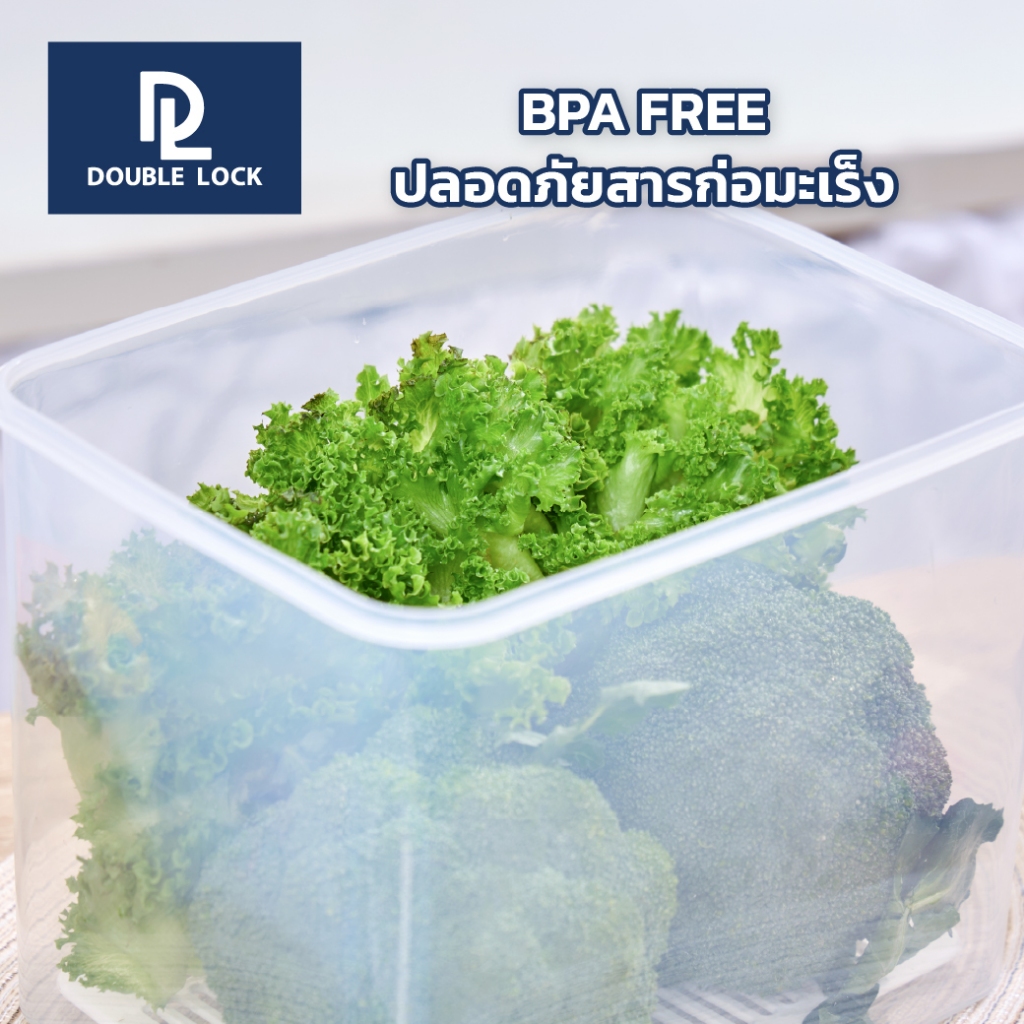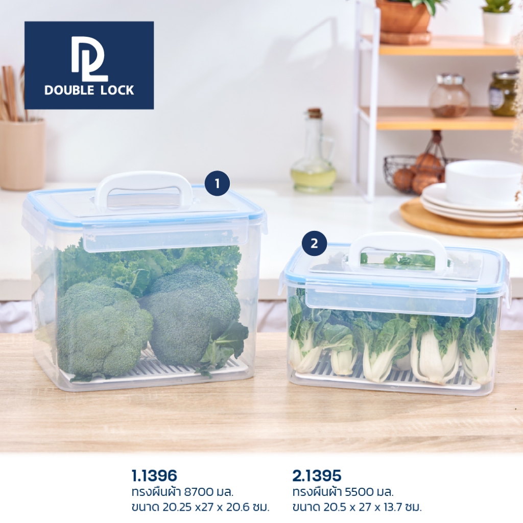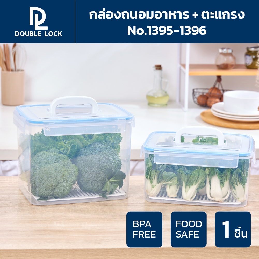 Double Lock กล่องอาหารเหลี่ยมหูหิ้ว พร้อมตะแกรง ใส่ผัก ผลไม้