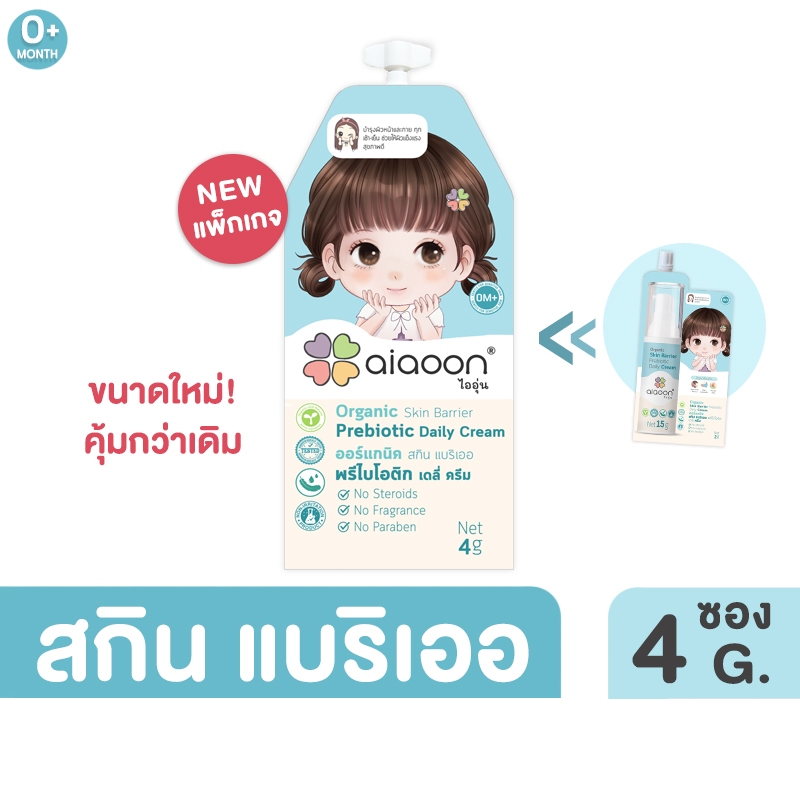 ไออุ่น ออร์แก นิค สกินแบริเออ พรีไบโอติก เดลี่ครีม 4g.บำรุงผิวเด็ก*ขนาดใหม่* (Organic Skin Barrier Prebiotic Daily Cream)