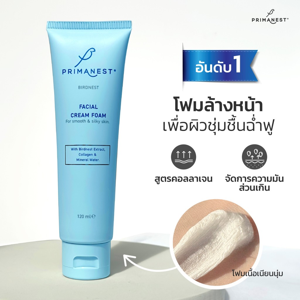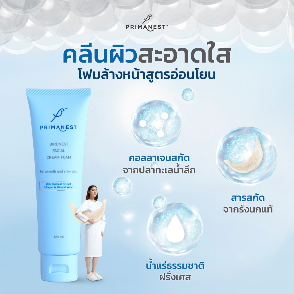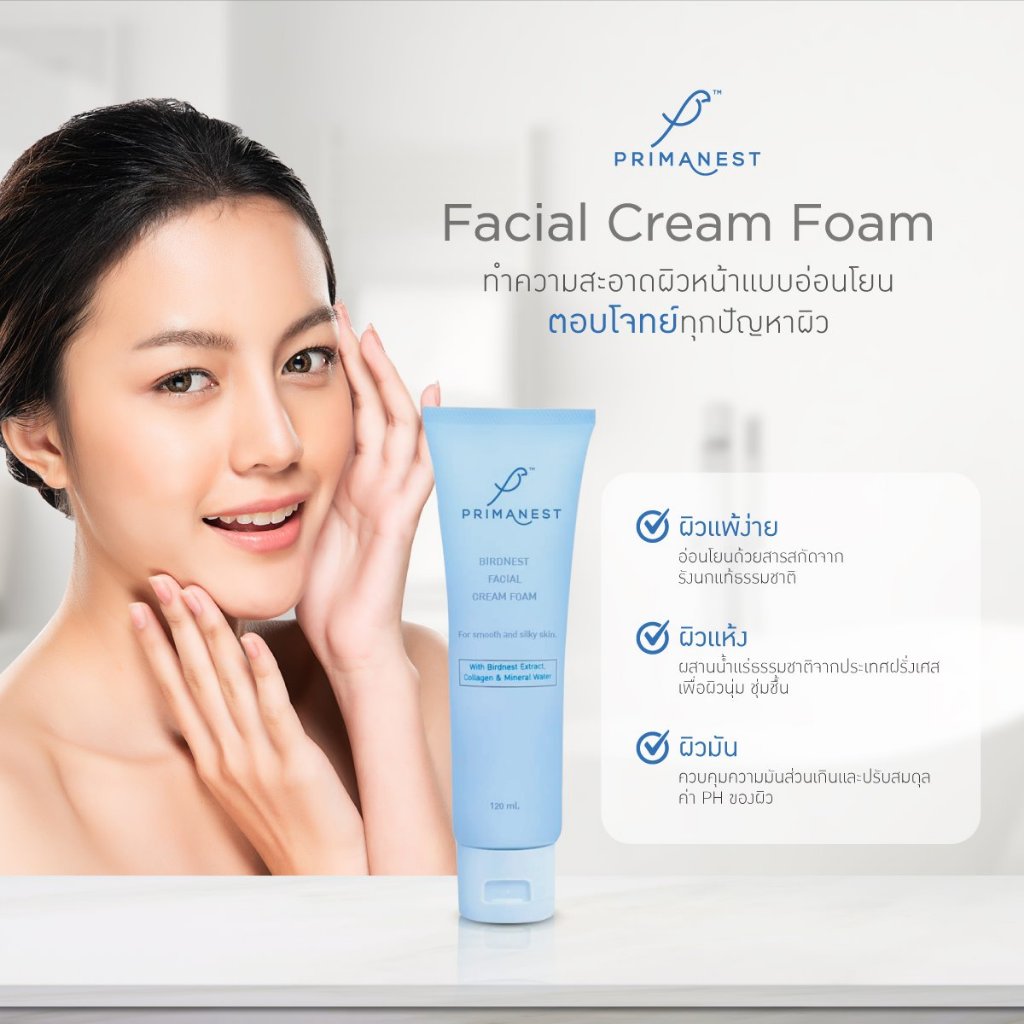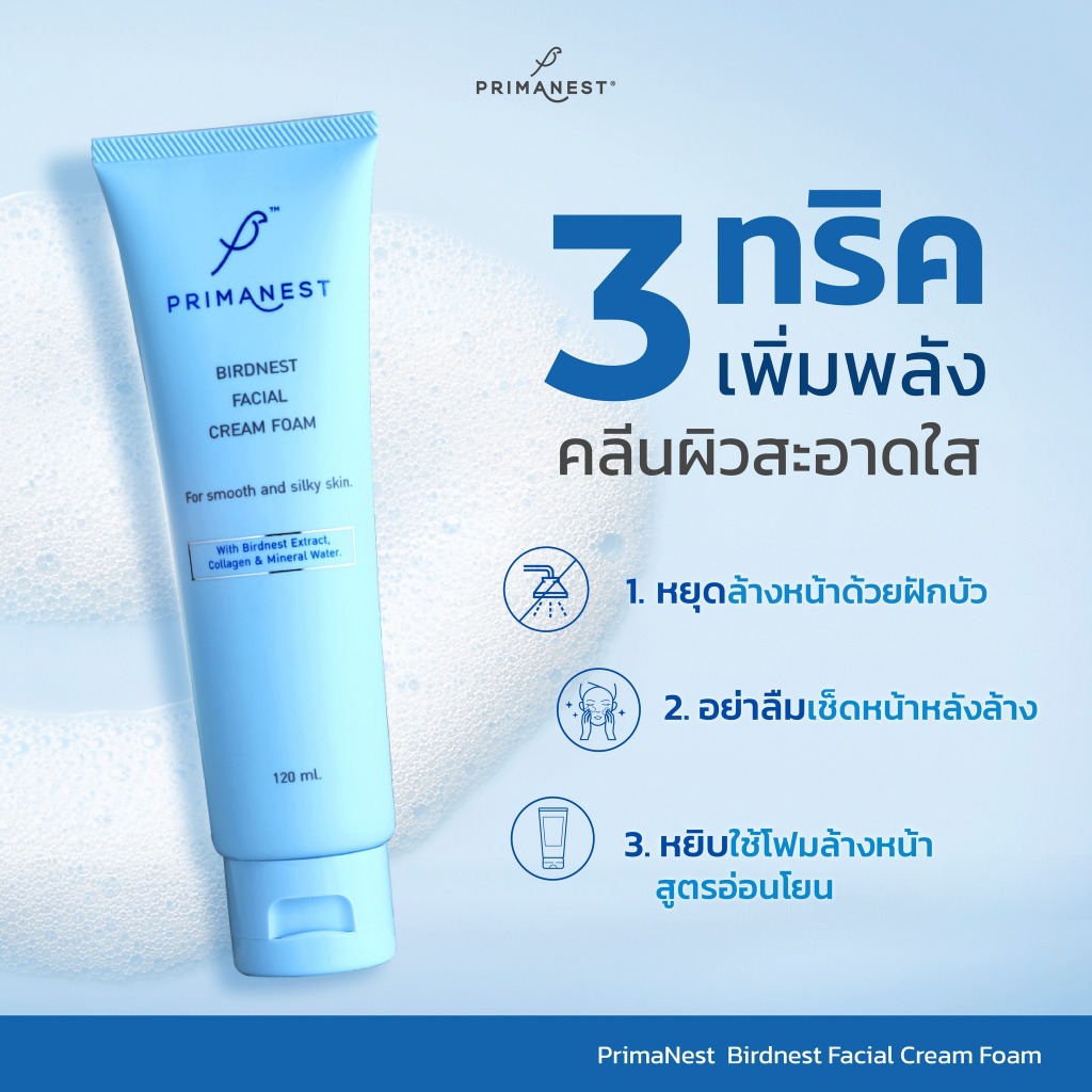 PrimaNest Birdnest Facial Cream Foam 120ml พรีมาเนสท์ เบิร์ดเนสท์ เฟเชี่ยล ครีม โฟม