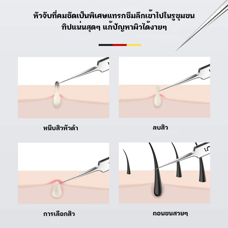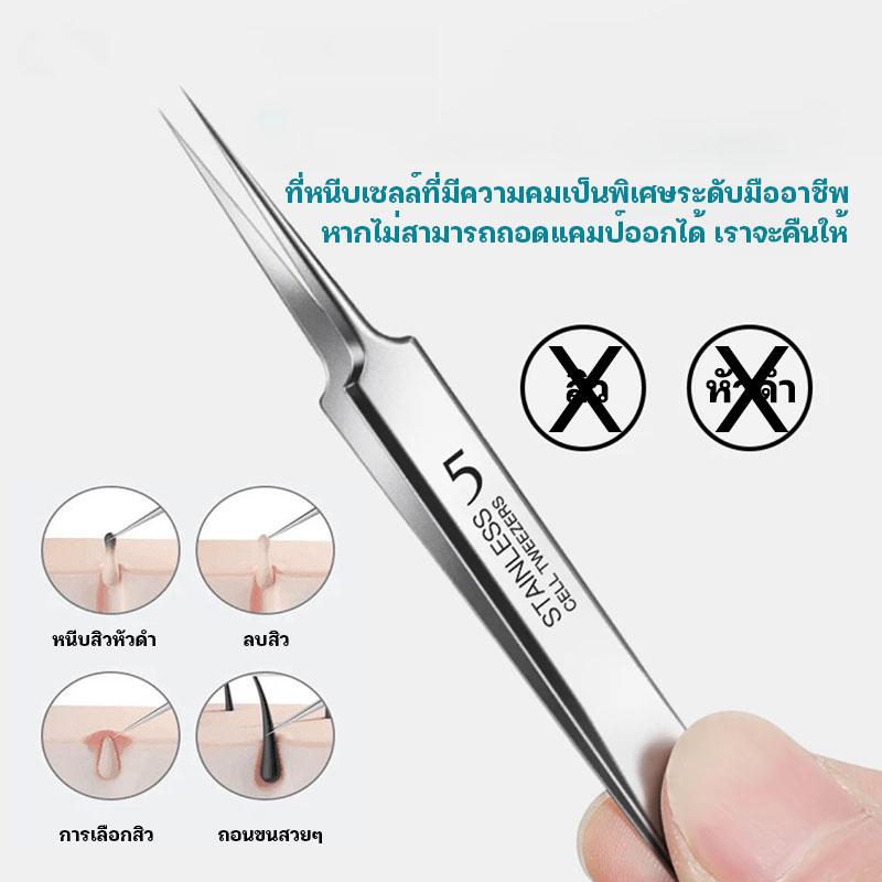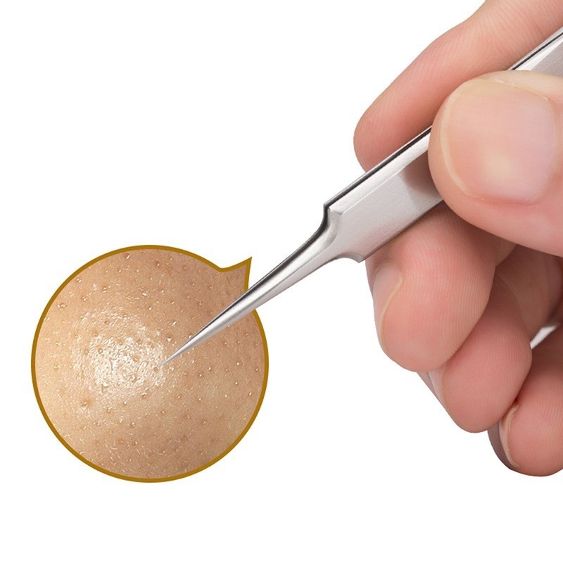 แหนบกำจัดสิวหัวดำ คีมกำจัดสิวหัวดำ กดสิว มาพร้อมกล่องเก็บ acne tweezers