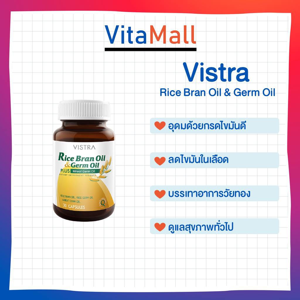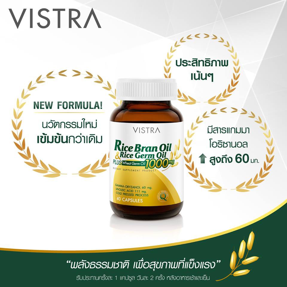 Vistra Rice Bran Oil & Rice Germ Oil Plus Wheat Germ Oil 40 cap น้ำมันรำข้าวและจมูกข้าว