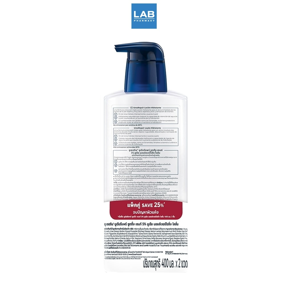[ Twin Pack Save 25% ] Eucerin Urea Repair Lotion 2x400 ml. [ แพ็คคู่ ลด 25 % ] ยูเซอริน ยูเรีย รีแพร์ มอยส์เจอร์ไรซิ่ง