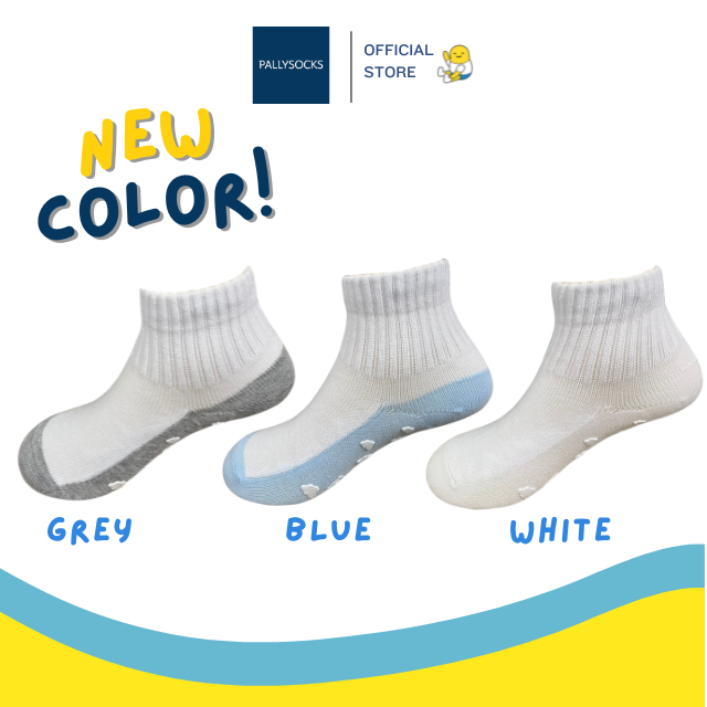 PALLY ถุงเท้านักเรียนกันลื่นข้อสั้นพื้นเทาผสมเยื่อไผ่ แอนตี้แบคทีเรีย ลดกลิ่นอับ ขนาดเตรียมอนุบาล