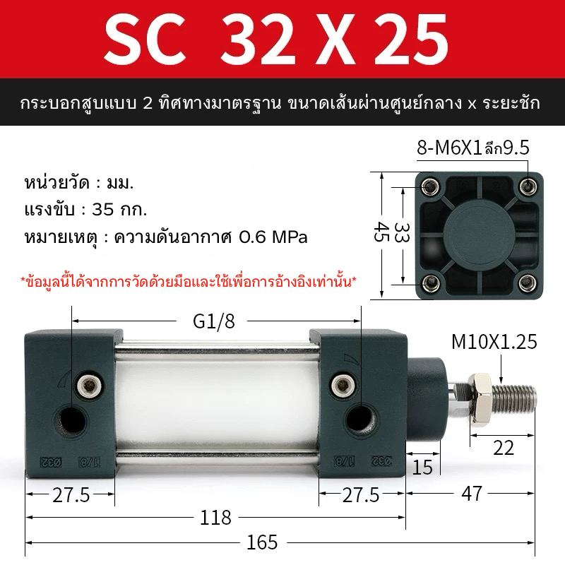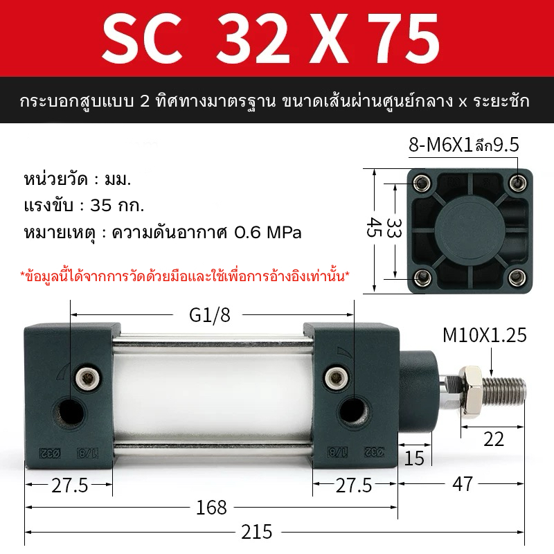 SC32 กระบอกลม รุ่นมาตรฐาน 4เสา Standard Cylinder SC MSC (Bore 32 x Stroke 32-500) พร้อมส่งในไทย PAMY